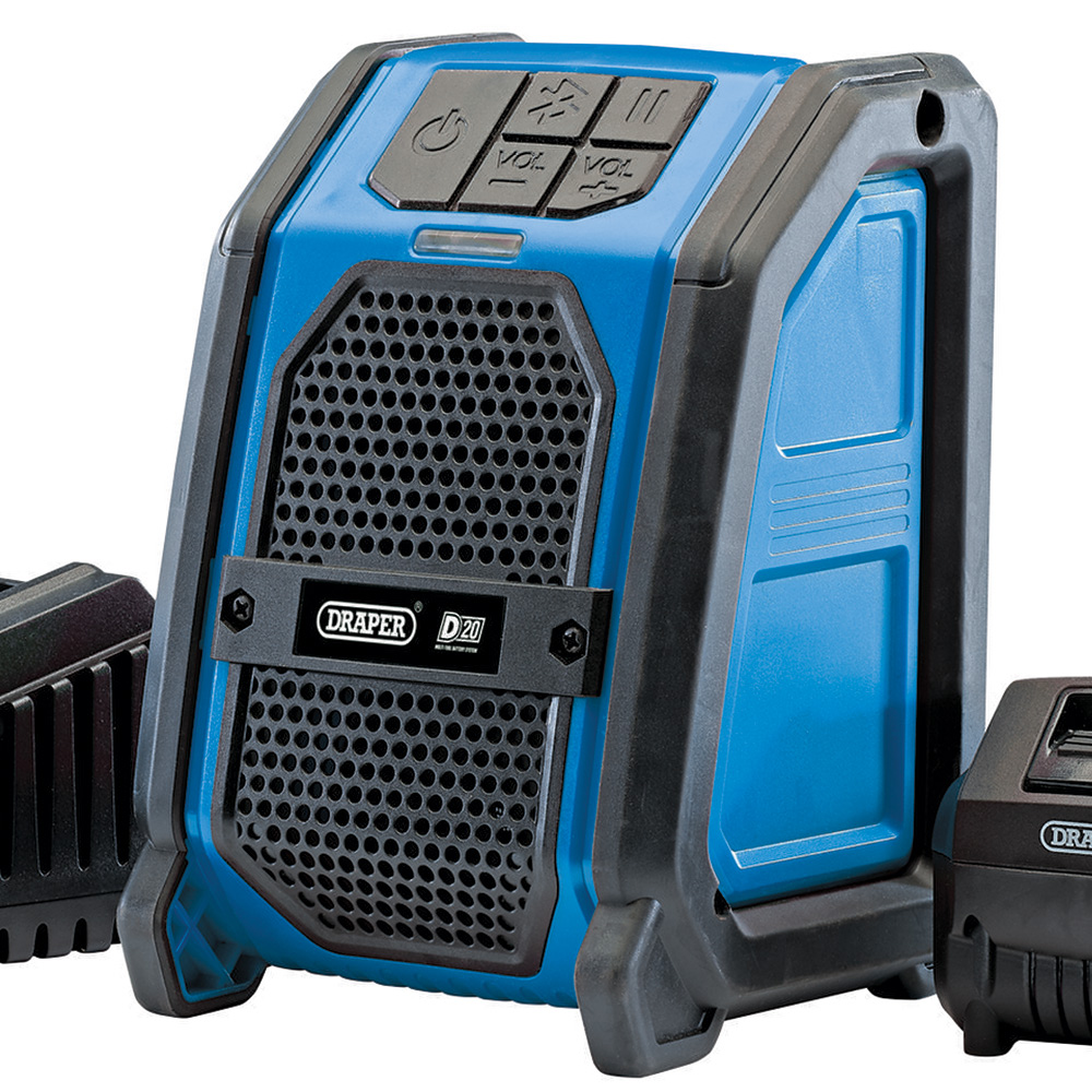 Experience the joy of music with the Draper D20 20V Wireless Speaker, equipped with a 3.0Ah Battery and Charger. This speaker is not only versatile and durable, but it also connects wirelessly to mobile devices through Bluetooth. Once connected, it will seamlessly stream music. Additionally, it includes an auxiliary port for MP3 compatibility and a USB port for charging mobile devices. The Draper D20 20V Wireless Speaker is a part of the essential range, catering to both music enthusiasts and professionals. Please be aware that any usage other than its designated purpose will be considered misuse. The speaker is powered by D20 batteries, which are available for purchase separately, along with the charger. With the D20 interchangeable battery system, you can conveniently use one battery with any tool from the D20 series.