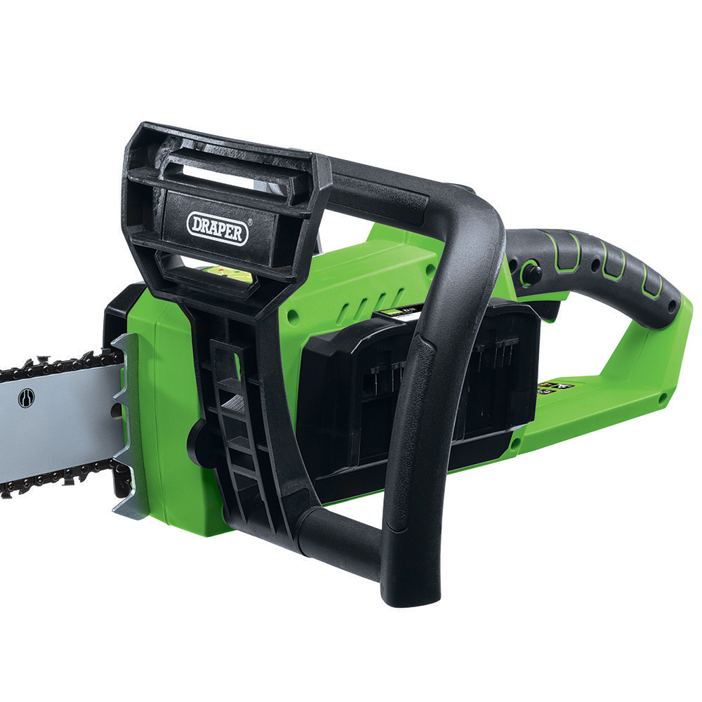 Make your garden look beautiful with the Draper D20 40V Chainsaw Bare Unit. This compact, powerful and lightweight chainsaw utilises D20 multi-tool battery technology. It is fitted with a host of features including a low kickback Oregon bar and chain. It has easy to use tool-free chain tensioner, a larger-than-average fell handle, an automatic chain brake, automatic chain lubrication and an oil level indicator window. Ideally suited for use with forestry, agriculture and garden activities – this chainsaw requires 2 D20 batteries. Please Note: Operates solely on batteries (not included), with no mains powers required.
