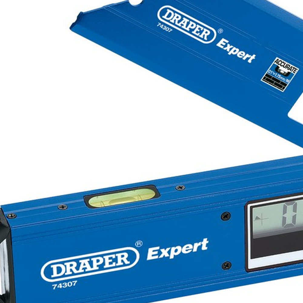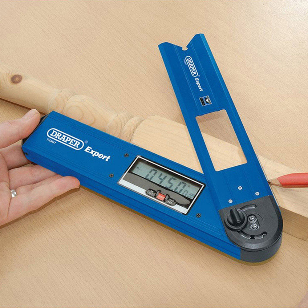 Get accurate measurements up to 0.1-degree with this expert quality 250mm Digital Angle Finder from Draper. It has an anodized finish with a lockable adjustable blade for easy angle finding in various applications. It also features an LCD display with absolute and relative angle options, which reads 'right way' when turned through 180 degrees.