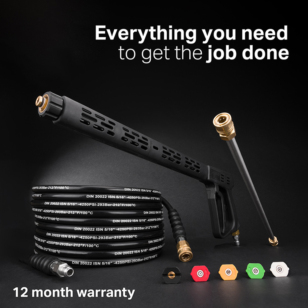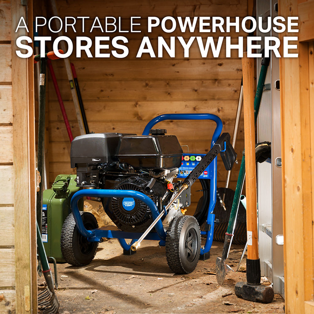 Make your outdoor space shine with the Draper Expert 83819 Blue Petrol Pressure Washer 13Hp. This pressure washer is ideal for the rapid cleaning of large vehicles, caravans, farm equipment, boats, and driveways. It would prove to be extremely helpful where no mains power is available with the four-stroke petrol engine. It is supplied with a 10m HP rubber hose with steel reinforcement, a metal gun, a nozzle set, a 1/4 inch plastic hose adaptor and a fuel funnel with hose. Maximum pressure: 262 bar. Weight: 55kg. Caution: Owing to the water pressure produced by this machine, it is unsuitable for use on domestic vehicles.