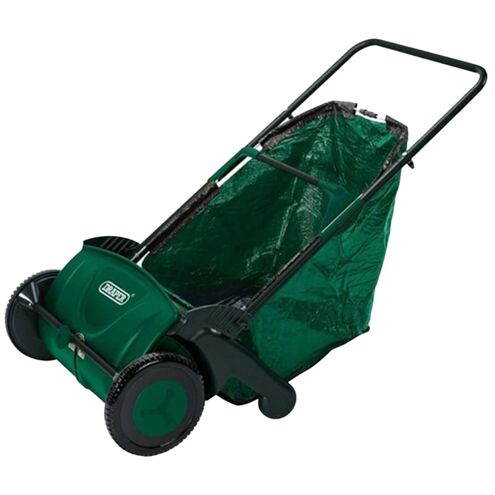 Keep your lawn clear of leaves, grass and garden debris with this Garden Sweeper from Draper. It is manufactured with a steel chassis and housed in a plastic body. The 21-inch working width easily collects the debris and catches it in a collection bag by means of the four height-adjustable nylon brushes.