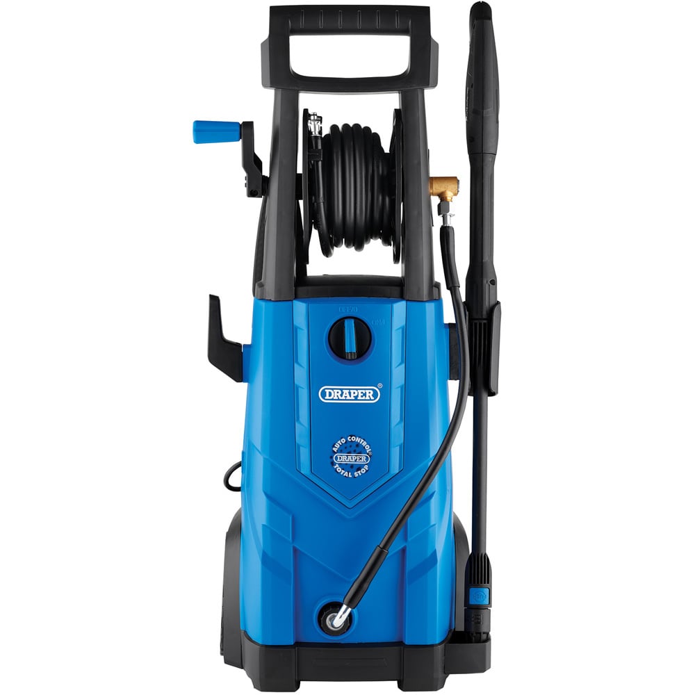 Tackle dirt and grime with ease with the Draper Pressure Washer 2200W. This versatile pressure washer comes with a comfortable carry handle and large wheels that ensure effortless manoeuvring, while the 6-meter high-pressure hose conveniently sits on an integrated reel for safekeeping. Save water and extend the lifespan of your device with the total stop device, which automatically cuts power when the trigger is released. Features: Wattage: 2200W. Working pressure (+/- 10%): 1595psi (110bar). Max pressure (+/- 10%): 2393psi (165 bar). Working flow (+/- 10%): 6.3l/min. Max flow (+/- 10%): 8.2l/min. Hose length: 6m. Cable length: 5m. Weight: 11kg.