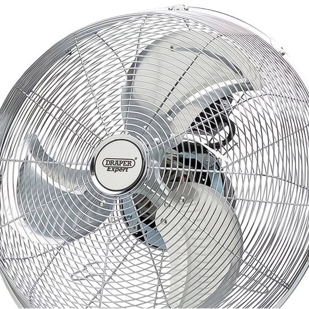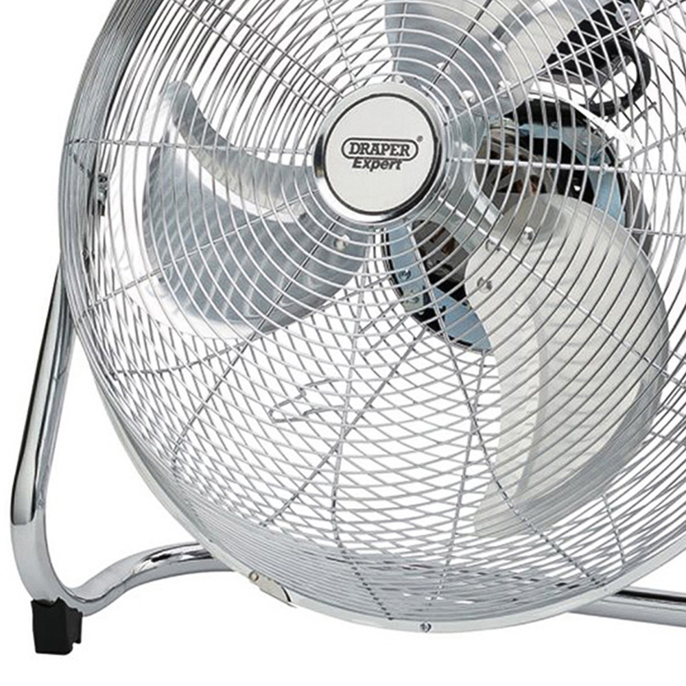 Enjoy quick and effective cooling while you work with the Draper Silver Internal Oscillation Floor Fan 18 inch. This high-quality industrial fan is equipped with a three-speed motor and two rubber feet for extra stability. Its patented internal oscillation feature enhances air circulation, while the 120° tilt cradle mechanism allows you to direct the airflow. The chrome-plated metal cage ensures safety during use. It comes with a cable and approved plug and operates at a voltage of 230V and frequency of 50Hz, with a rated input of 100W. Dimensions: H55 x W56 x D29cm.