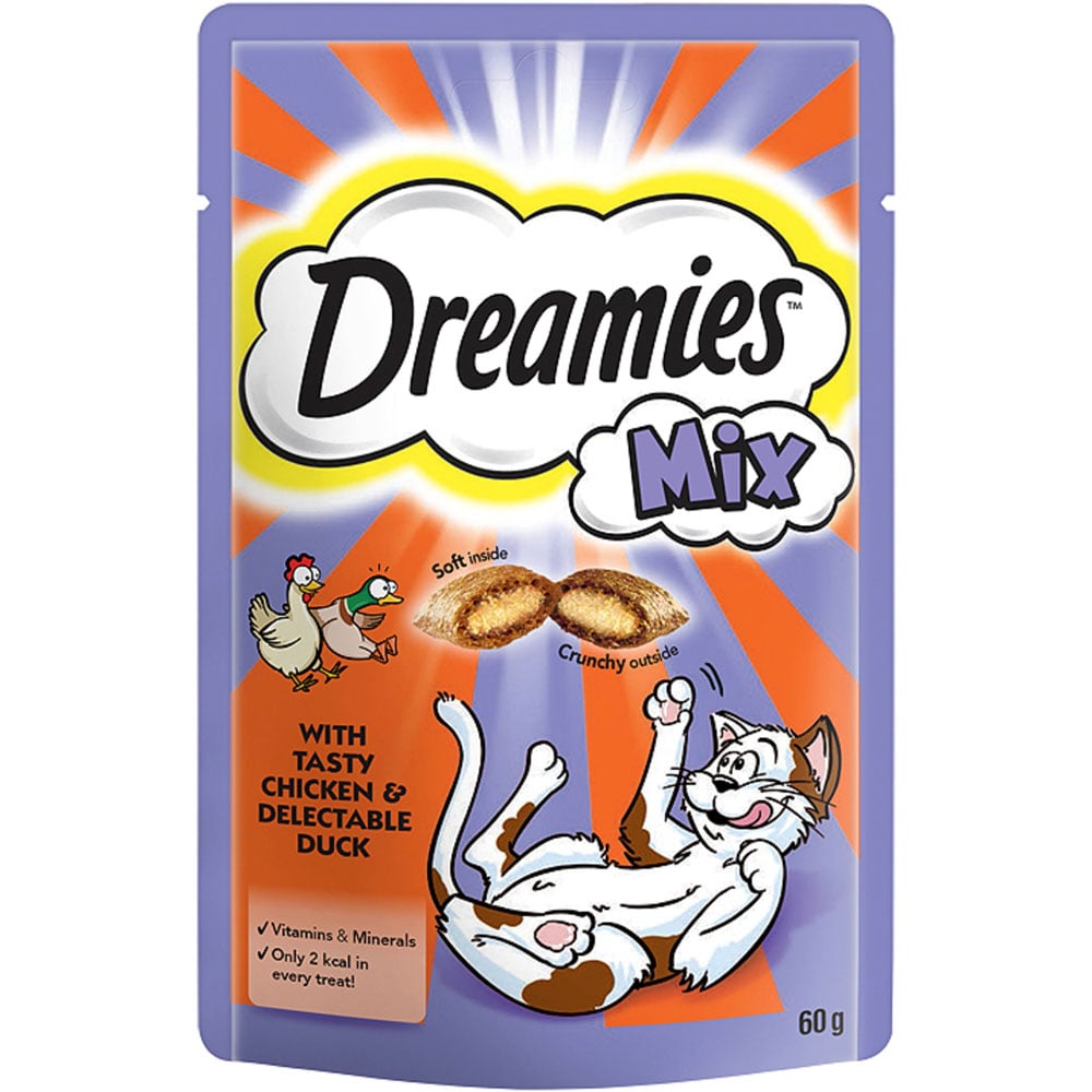Treat your furry cat friend with Dreamies Mix Chicken and Duck Cat Food 60g. Featuring a crispy outer shell and a soft, flavourful centre, your feline will adore. Perfect for rewarding good behaviour, these treats are enriched with essential vitamins and minerals to support your cat’s health. Each treat contains just two calories, making them a light and tasty indulgence. Feeding Guidelines: Offer as a treat or reward alongside a balanced diet. Always supervise your cat during treat time and ensure fresh water is available. To avoid staining, serve on a surface that won’t be damaged by food.