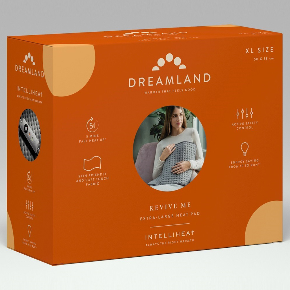 Relax comfortably with this Dreamland Revive Me Extra Large Heat Pad. Designed to bring you comfort and support your well-being, it uses intelligent technology to offer instant heat-up and precise temperature control for a full three-hour heat treatment. It's made from super-soft, skin-friendly fabric moulds that snug to your body comfortably. A modern alternative to a hot water bottle, it can be used all over your body, especially over the neck, shoulders, back, and abdomen to provide total relaxation.