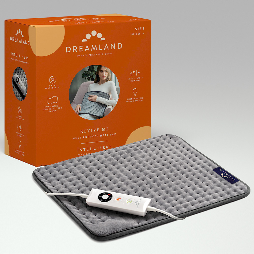Relax comfortably with this Dreamland Revive Me Standard Heat Pad. This heat pad uses intelliheat technology to offer instant heat-up and precise temperature control for a full three-hour heat treatment. It's made from super-soft, skin-friendly fabric moulds that snug to your body comfortably. A modern alternative to a hot water bottle, you can use it over your body, especially your neck, shoulders, back, and abdomen, to experience total relaxation.