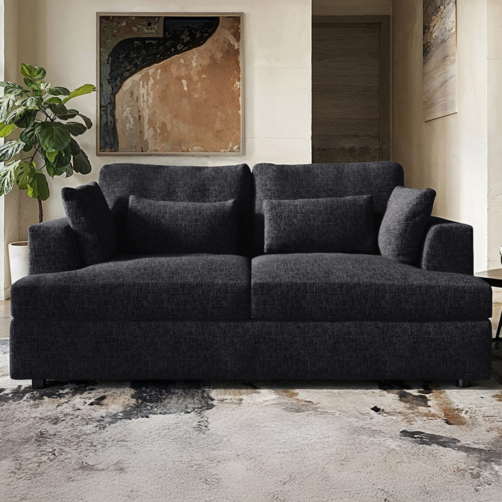 Experience the perfect blend of luxury and comfort with Solace+Co Drew 2 Seater Charcoal Chenille Sofa. It combines modern luxury with effortless comfort, making it a standout piece in any contemporary living space. Upholstered in a soft, plush chenille fabric, this sofa exudes sophistication and provides a welcoming feel for family and guests. Designed for a comfortable seat and comes with four matching scatter cushions to enhance its cosy appeal. The seat and back cushions are foam-filled, offering supportive comfort that retains its shape. For added convenience, the cushion covers are removable, making it easy to keep the sofa looking fresh and clean. Assembly is a breeze, you simply have to attach the feet, and you’re ready to enjoy your new centrepiece. With its sleek silhouette and luxurious finish, this is perfect for modern homes looking for a blend of style and relaxation.