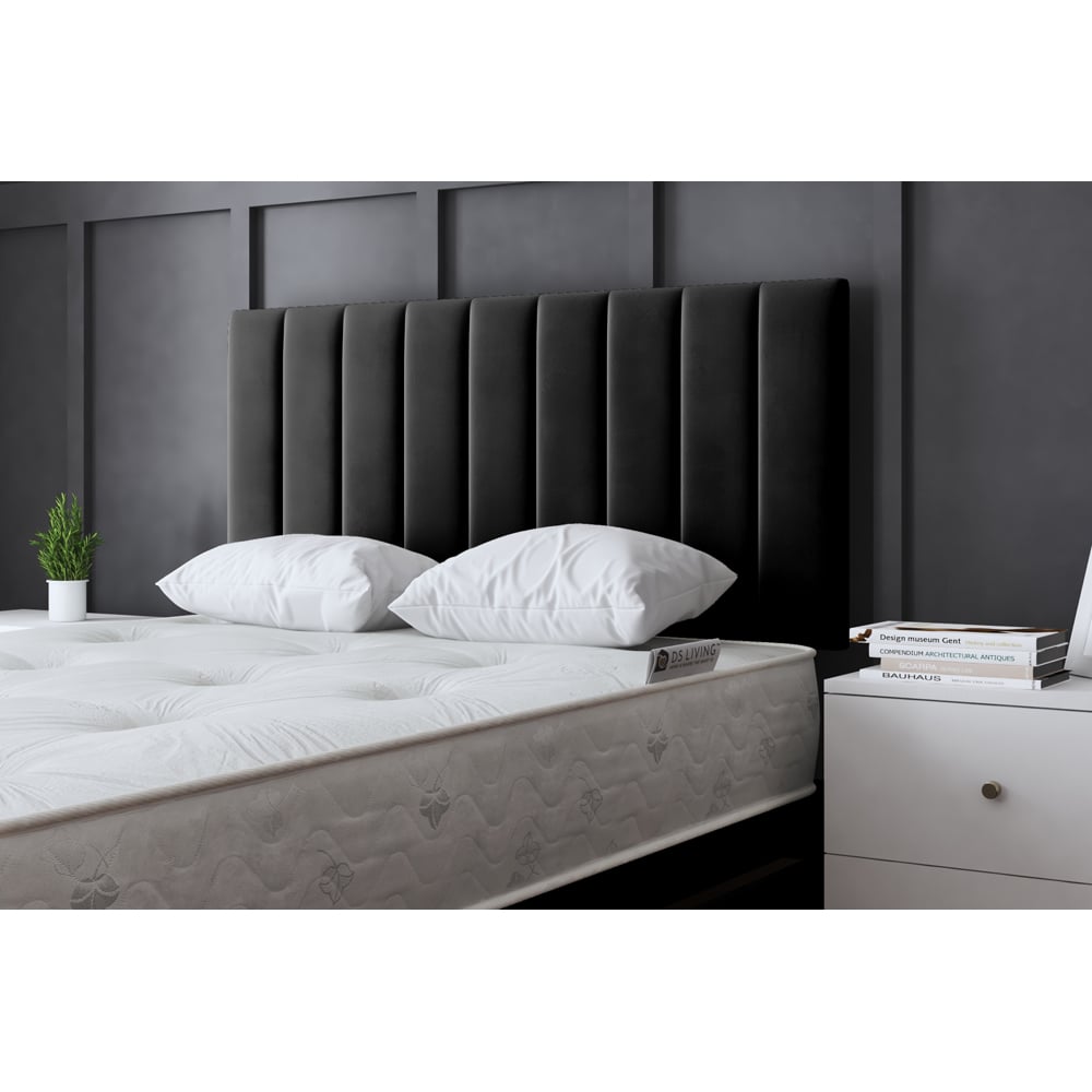 Sleep beautifully and wake up refreshed with the DS Living Amelia Double Black Upholstered Panel Divan Bed. The headboard, in a rich black colour, adds a touch of luxury with its deep-padded panels that beautifully reflect natural light. Built with durability in mind, this bed comes with a 24-inch headboard. This headboard is securely fitted to the base with sturdy wooden struts for extra support. Crafted from a solid hardwood mix, this bed is made to last, giving you a blend of quality and timeless style. Please note that the mattress is sold separately. This bed is handcrafted, so slight variations in dimensions may occur. It is recommended that you check the stairs and room space before making a purchase. Size: 150 x 210cm.