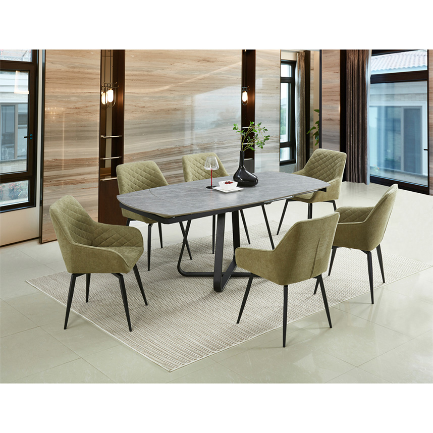 Arden Dining Table – Sophisticated Functionality Meets Striking Design Rotating, Extendable Tabletop The Arden features an 11mm thick S1 black ceramic tabletop, reinforced with a hidden mesh layer for added strength and long-term durability. Its sleek black finish radiates modern elegance, instantly elevating the look of your dining space. With a smooth rotating and extendable design, it adapts effortlessly to your needs — whether you’re hosting an intimate dinner or entertaining a larger group. Strong Metal Frame & Legs Crafted from durable metal and finished with a black sanding powder coating, the Arden’s frame and legs combine strength with style. This matte finish offers excellent resistance against scratches and corrosion while perfectly complementing the ceramic top, resulting in a cohesive, high-end aesthetic. Spacious & Adjustable Dimensions •Size: (1200 + 300 × 2) × 900 × (740–760) mm • Expandable Design: Easily extends to accommodate more guests without compromising on space or style. Choose From 3 Elegant Ceramic Textures: •White Veined Marble (XJY1): Sophisticated white veins over a deep black base for a refined, luxury marble effect. •Light Gray Cracked Stone (XJY2): A unique, textured look inspired by weathered stone – rustic yet modern. •Black & Gray Intertwined Stone (XJY3): A bold mix of black and grey tones for a statement-making, contemporary finish. Whether you’re aiming for minimalist chic or urban luxury, the Arden Dining Table offers a perfect blend of style, durability, and adaptability — making it a standout centrepiece in any modern home