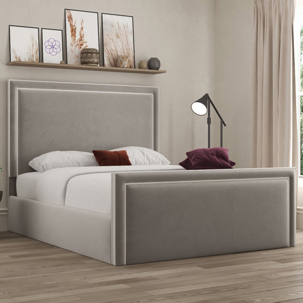 Transform your living area with the modern comfort of the DS Living Verona Small Double Bistra Beige Piping Bed Frame. This bed is an elegant combination of classic design and contemporary comfort, characterised by its sleek lines and understated piping detail. The spacious headboard serves as a captivating focal point, enhanced by the graceful double-border design that brings structure and sophistication without being overly ornate. Whether you're creating a serene, neutral escape or a richly textured setting, the Verona serves as the ideal foundation. Built with a robust base and high-quality materials, the bed promises durability while exuding an effortlessly elegant look. Its tailored profile is perfect for modern homes aiming for a balance between simplicity and decorative flair. Disclaimer: Each bed is custom-made and not shipped flat. As all pieces are made to order, returns are not accepted unless the item is found to be defective upon receipt. Additionally, if a customer agrees to a specific delivery time but is not available, then any further delivery attempts will incur charges based on the courier's policies. All measurements are approximate and rounded to the nearest unit. All beds are designed to fit standard UK-sized mattresses. The company cannot take responsibility for items that do not fit up the stairs or into your bedroom, so please confirm you have enough space before placing an order. Please note that the images displayed online are created in a studio for presentation purposes. While we aim for accuracy, actual colours may differ slightly due to variations in fabric batches and monitor settings.