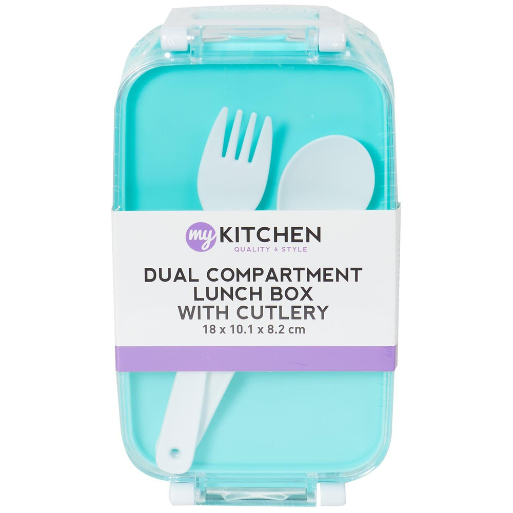 The Dual Compartment Lunch Box with Cutlery is a stylish and practical addition to your kitchen collection. The box is suitable for taking your lunch to work, on trips, and more! The lunch box comes with two compartments to suit sandwiches, salads, and snacks, and comes with its own cutlery for convenience.
