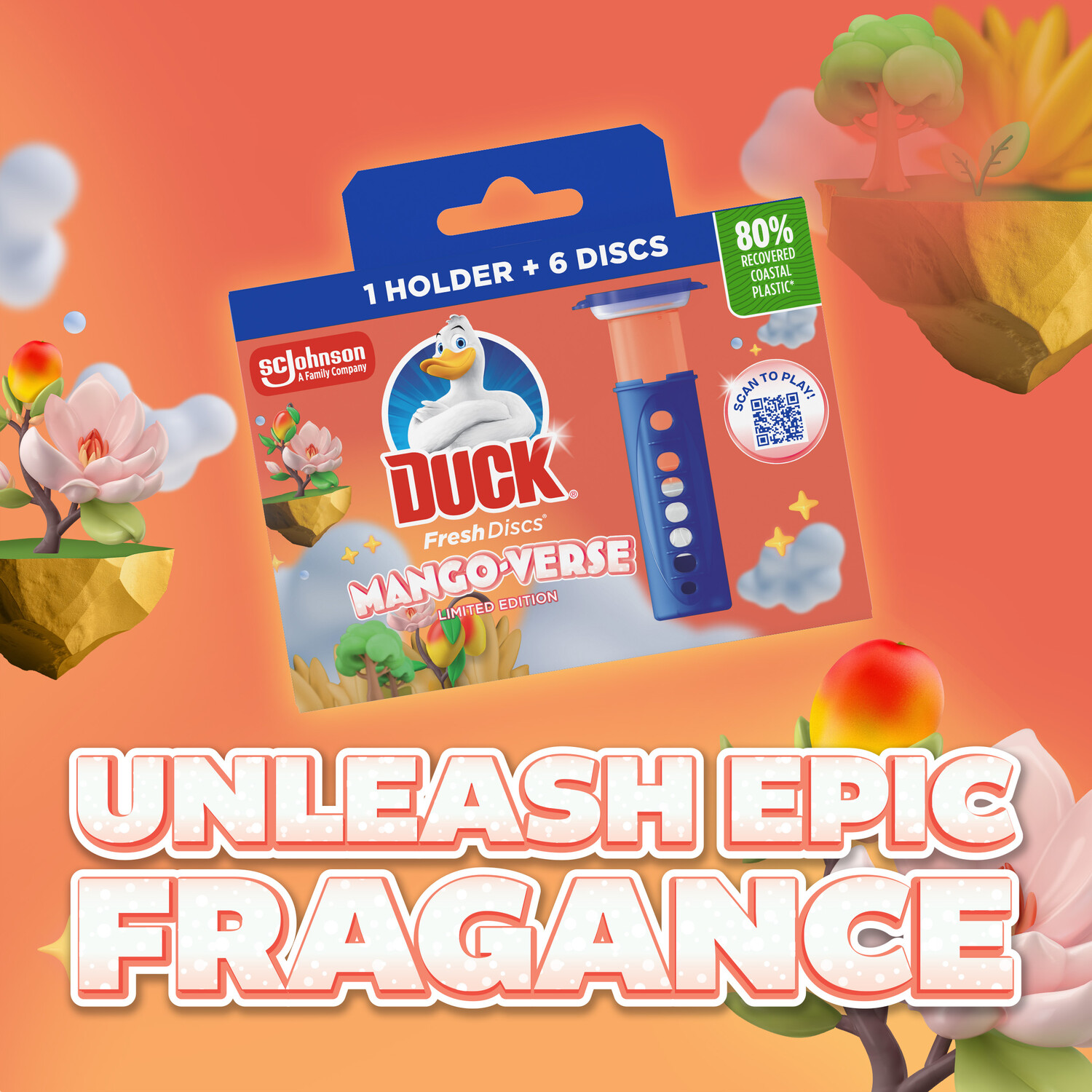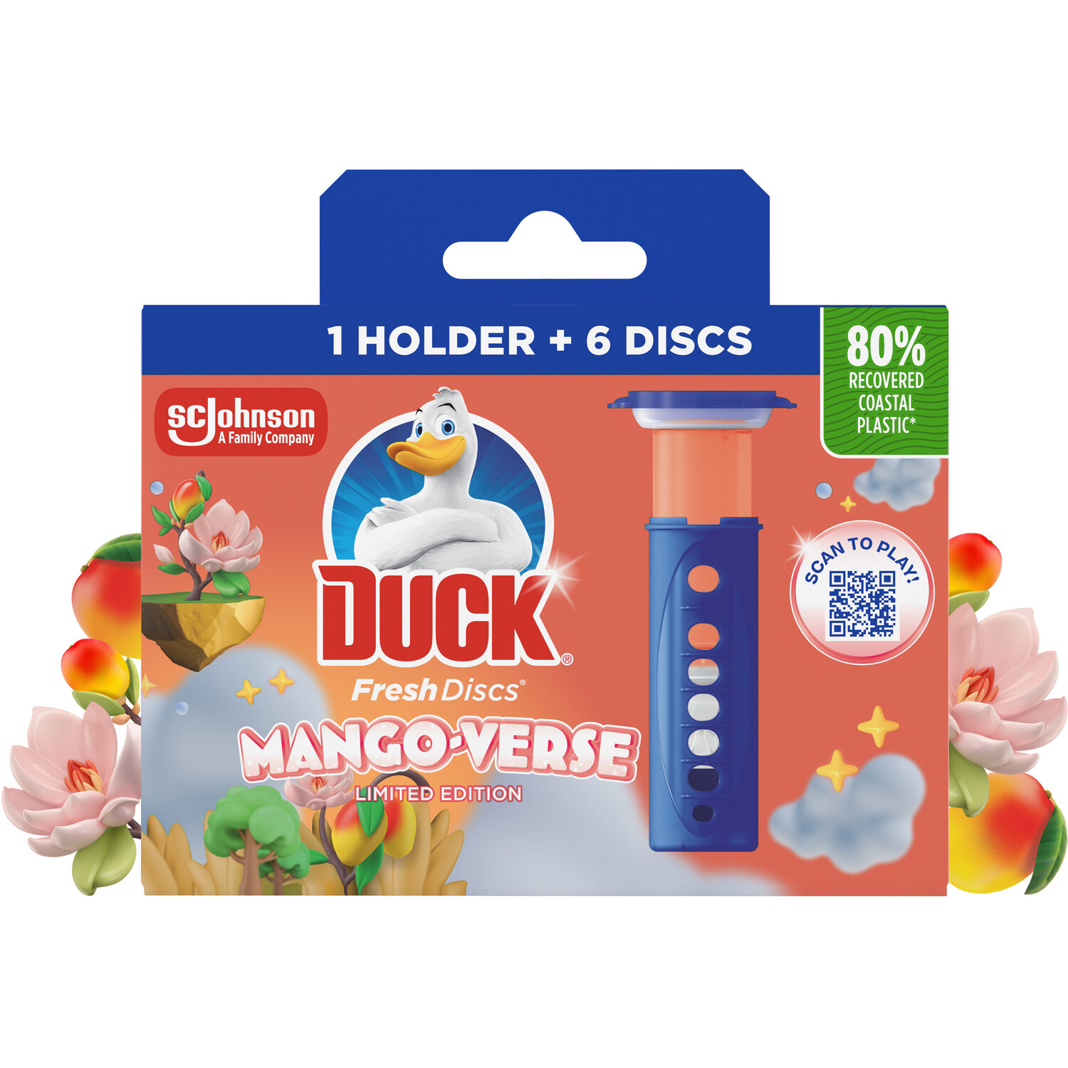 Keep your toilet clean and hygienic with the Duck Fresh Disc Holder and Discs 36ml. These discs feature a unique gel-based formula that self-sticks the toilet bowl, effectively tackling limescale and stains. With every flush, they keep your toilet bowl clean and eliminates odour, leaving behind a fresh scent.