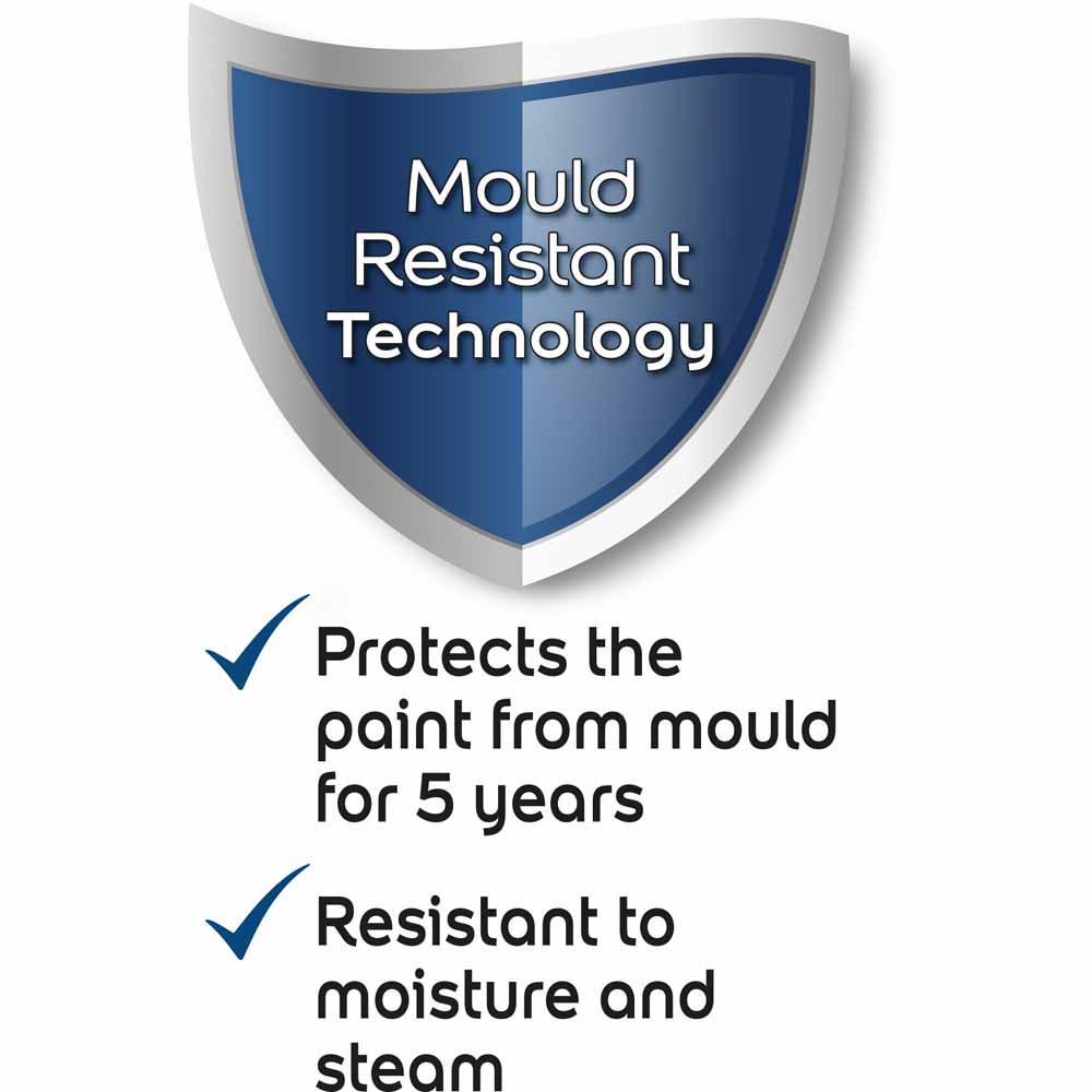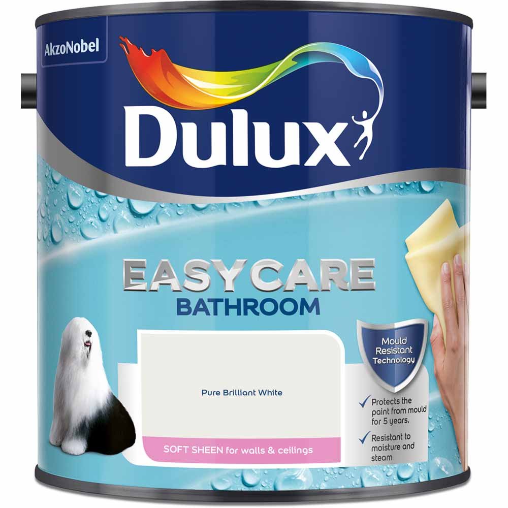 Dulux Bathroom+ Soft Sheen is an exceptionally tough moisture and steam resistant paint. Independent laboratory testing has shown that the MouldTec formulation protects the paint against mould for five years, keeping your bathroom looking great for longer. Water based paint. Minimal VOC content. 2.5L of Dulux Bathroom+ Soft Sheen Emulsion Paint in Pure Brilliant White. Warning: Keep out of reach of children. Always read instructions. Coverage up to 35 square metre.