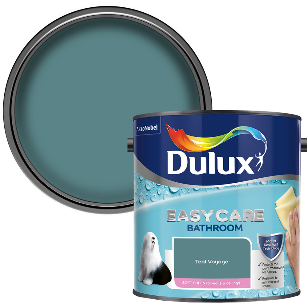Give your bathroom a perfectly neat look with Dulux Easycare Bathroom Paint in teal voyage shade. This paint is exceptionally tough and steam resistant providing outstanding shine and super smooth finish to your bathroom walls. Its mould resistant formulation shields the paint against mould formation for up to five years. Keep your bathroom looking great for longer period with this terrific paint. Shade: Teal Voyage. Size: 2.5L.