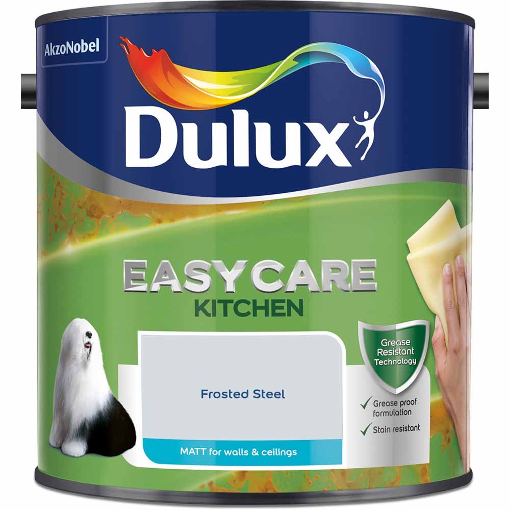 Dulux Kitchen+ Matt is an exceptionally tough, grease and stain resistant paint. Its Grease Proof formulation resists everyday cooking stains, and it's washable without the colour fading, so even the busiest kitchens will look great for longer. Chromalock is technology exclusive to Dulux that creates an invisible protective barrier around the colour on your walls, protecting from the wear and tear of everyday life, bringing you colour that lasts. Coverage is 30 square metre. Leave 5 hours to dry between coats.