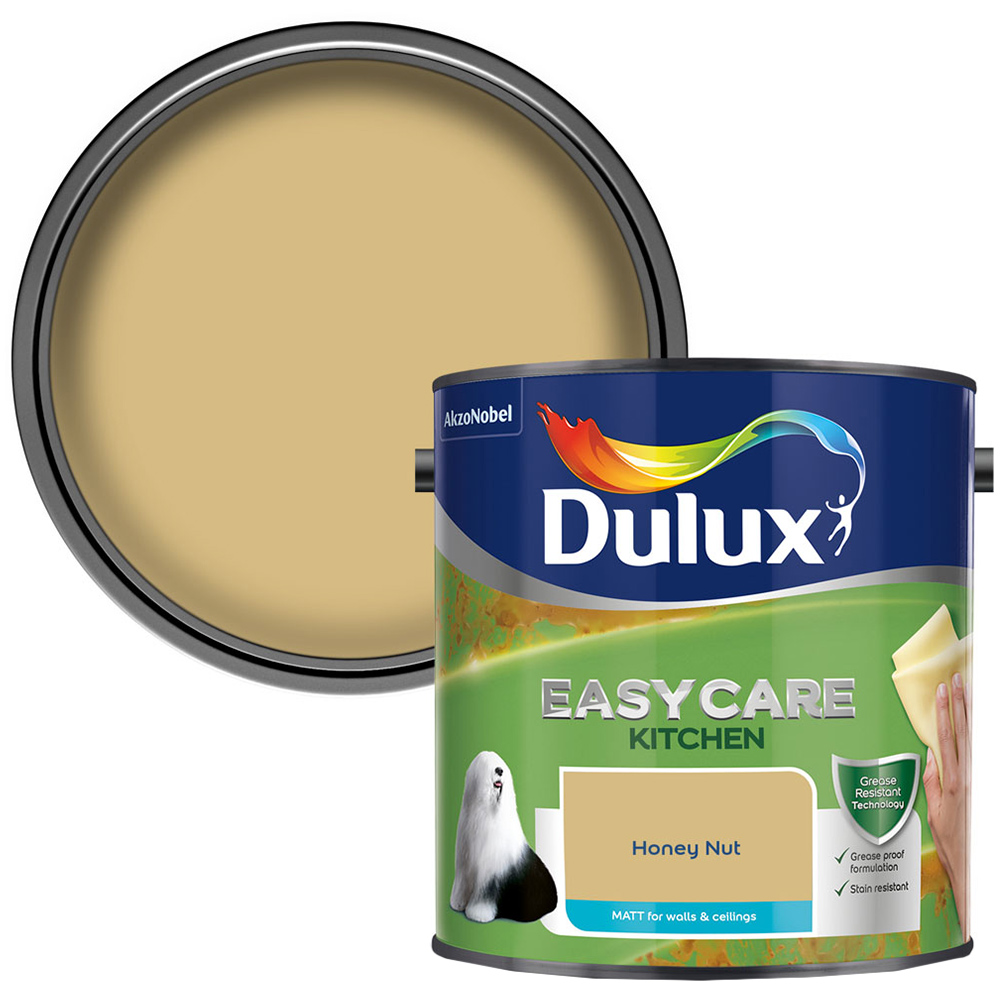 Maintain a neat look of your kitchen with Dulux Easycare Kitchen Paint in honey nut shade. The paint is exceptionally tough and grease resistant that help keep your kitchen walls looking great for longer period. With its washable formulation, you can easily remove the stubborn greasy stains without damaging the paint of your kitchen walls. Shade: Honey Nut. Size: 2.5L.