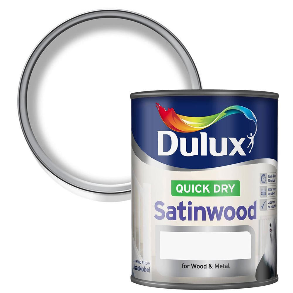 Dulux Satinwood has been specially formulated to give a perfect satin finish on interior primed or painted wood or metal surfaces in just one coat. It does not require an undercoat. Water based paint. Low VOC content. 750ml of Dulux Satinwood Paint. Keep out of reach of children. Always read instructions. Coverage up to 12 square metre.