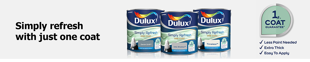 Give your walls a refresh in a few hours thanks to Simply Refresh one coat paint from Dulux. Available in a range of stylish and on-trend colours the thick and creamy paint can be applied using a roller or brush and will give such great coverage that it’s one coat, paint job done!