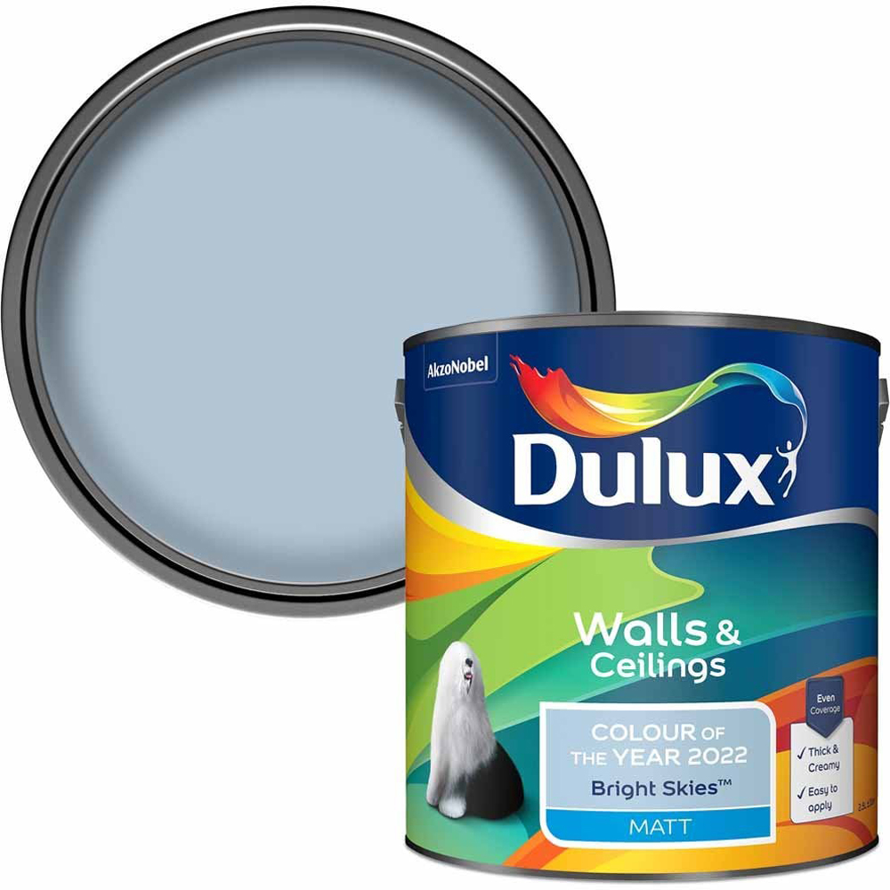 Revamp your interior and give it a fresh new look with this Dulux Silk Bright Skies. Dulux colour of the year 2022, Bright Skies is an airy light blue that perfectly captures this hopeful mood of the moment, all signs pointing to new beginnings. You will find this smooth and creamy silk emulsion paint easy to apply. Ideal to use on walls and ceilings, the paint will help give a delicate shiny finish to your interior. Coverage is 14 square metres per liter. Size: 2.5L.