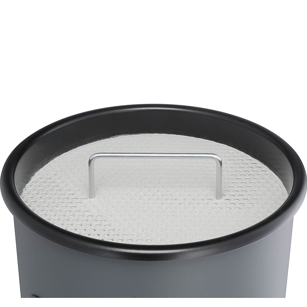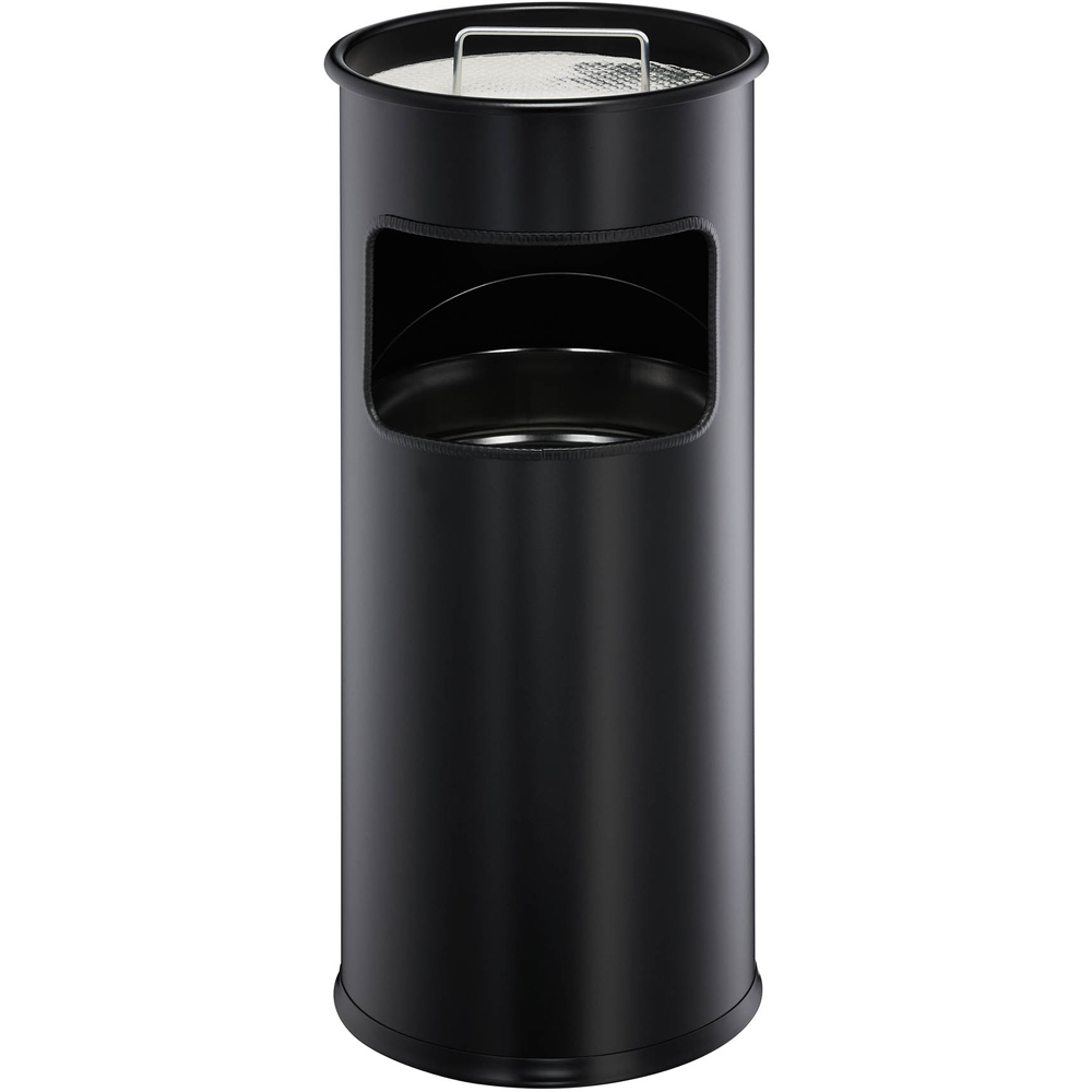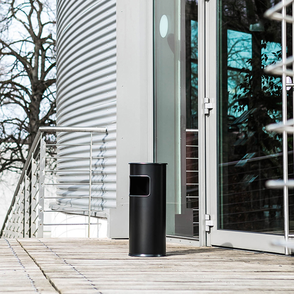 Introducing our 17L integrated ashtray bin, a smart solution for keeping outdoor spaces clean and accommodating smoking needs. With a removable aluminium insert, cleaning is a breeze. Durable and sleek, it fits seamlessly into any environment, ensuring a tidy and organised space. Say goodbye to scattered cigarette butts with this convenient and stylish solution. Includes 1 x Safe ashtray bin, 1 x Removable inner bin, 1 x Removable ashtray insert, 1 x Bag of silver ashtray sand (1.5kg. Suitable for Indoors and covered outdoor areas. Dimensions: (H x Ø): 620 x 260 mm.