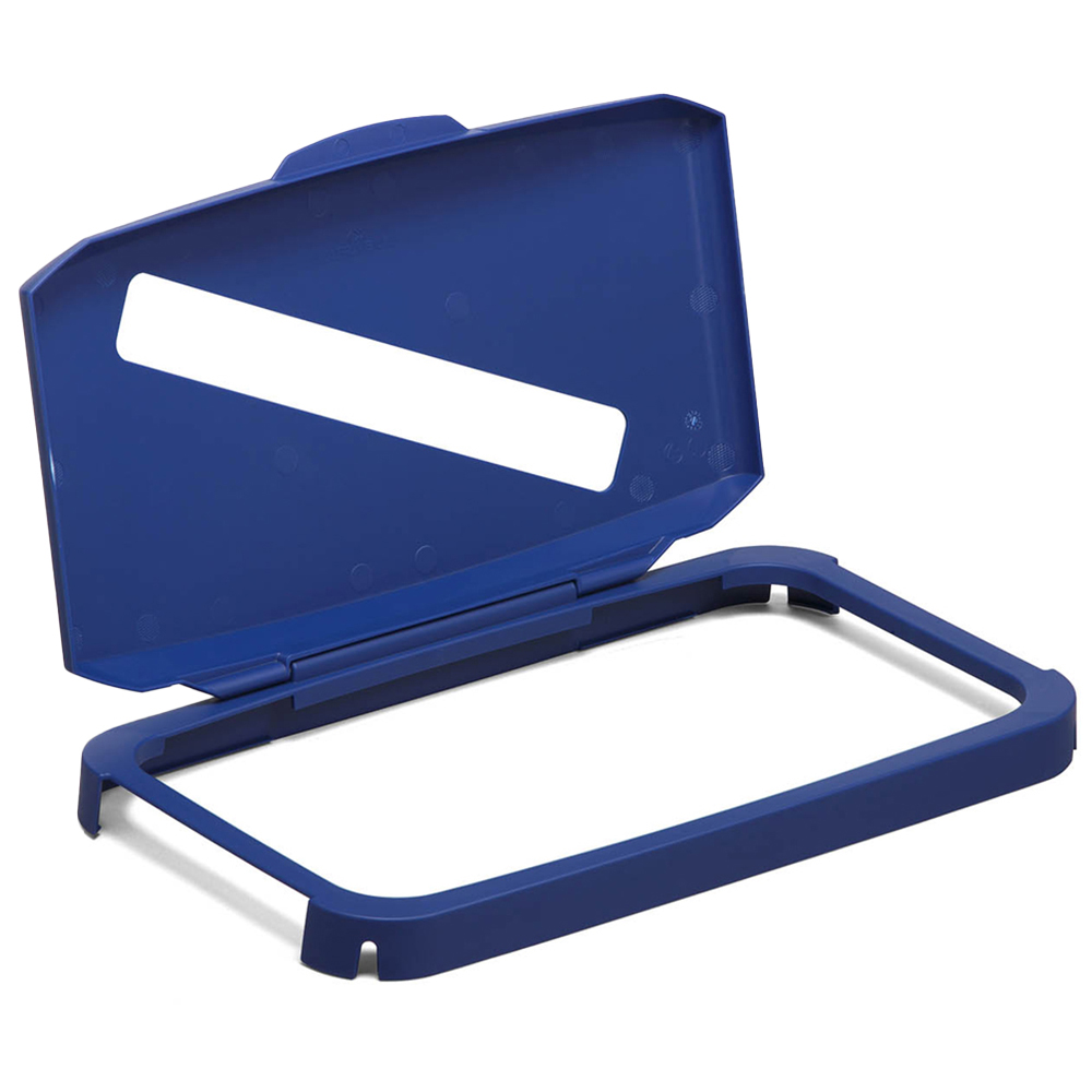 Rectangular frame with hinged lid with a slot cut-out for the disposal of paper or cardboard. The lid is easy to attach to all DURABIN 60 bins with a clip-on hinge. Perfect for making recycling easy in the workplace or at home