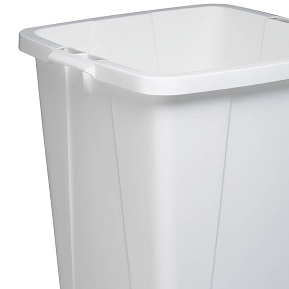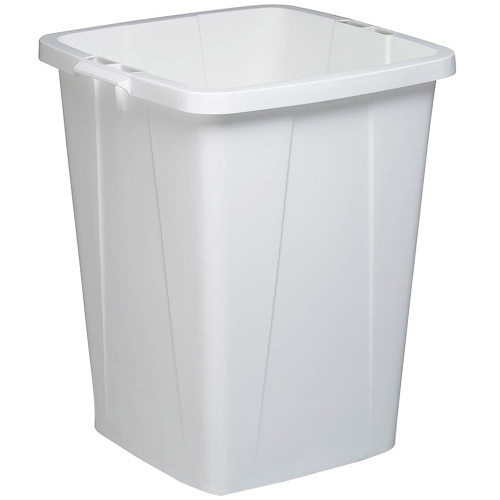 Keep your space tidy and organised with this Durable DURABIN White Square Waste Recycling Bin 90L. This 90 Litre square bin comes with handles for easy transportation. It is ideal for waste-disposal and recycling in the office and warehouse environment. It is food safe to European standard in all colours except black (pursuant to EU Directive 1935/2004/EU). Dimensions: 610 x 520 x 490 mm (H x W x D) Lid sold separately.