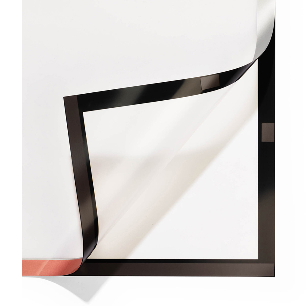 The original fold-back frame. DURAFRAME POSTER is heat stable up to approx. 70 degrees, UV resistant and anti-glare. The frames are double-sided, so when applied to glass, different information can be displayed on either side. They are suitable for posters on walls, glass and shop windows etc. Quick insertion and exchange of documents via a fold-back magnetic frame helps with quick-changing, seasonal signage. Bubble-free attachment thanks to two adhesive strips on the back, to give a professional look. The frames can be removed without leaving any residue and can be used in portrait and landscape orientations.