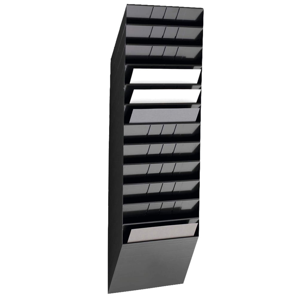 Stay organised in style with the Durable FLEXIBOXX 12 Slot A4 Landscape Black Wall Mounted Literature Holder. This modular literature holder is perfect for displaying and presenting documents in A4 format. Made of strong plastic, the holder can be installed and mounted to flat load-bearing surfaces in a matter of moments. The document holder can be easily extended to add further slots for a flexible, future-proof solution. The literature holders are made to a high standard from premium quality plastics and undergo strict quality control. This provides a great finish and extended product lifecycle. Dimensions: 1145 x 348 x 95mm.