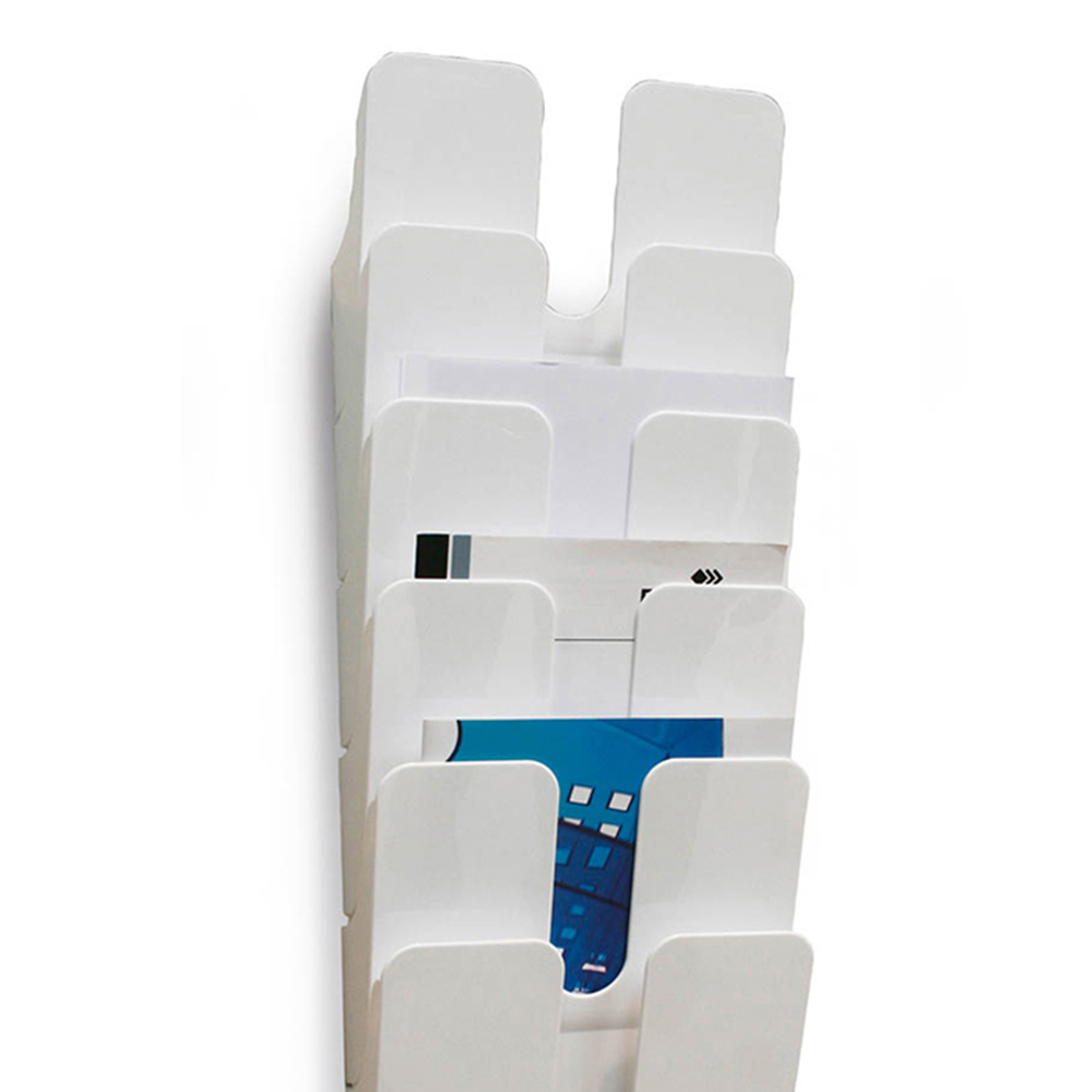 Elevate the presentation of your A4 documents with the Durable FLEXIPLUS 6 Wall Mounted Literature Tray in white. This set of 6 modular trays is perfect for organising and displaying portrait-oriented A4 materials, whether in an office, showroom, or reception area. The sleek white finish adds a touch of elegance to any environment. Constructed from robust plastic, these trays can be quickly and securely mounted on any flat, load-bearing surface. The expandable design allows for the addition of more trays, providing a flexible and future-proof solution as your needs grow. Designed and manufactured in-house in Germany, every Durable FLEXIPLUS tray is made to the highest standards. The premium-quality plastics and strict quality control processes ensure a superior finish and extended durability. Dimensions: 1080 x 247 x 23 mm (H x W x D)
