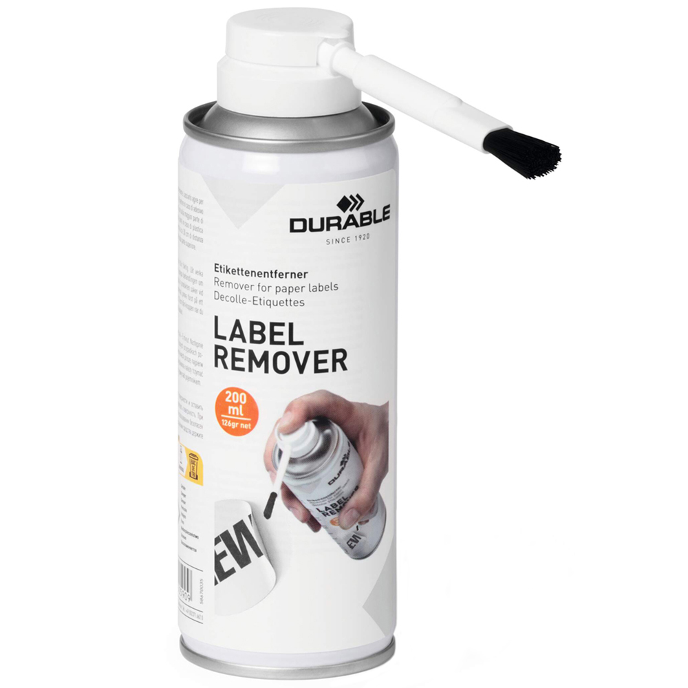 Remove adhesive labels effortlessly with the Durable Label Remover. This solution is for effortlessly removing adhesive labels, stickers, and tape without any sticky residue left behind. The innovative formula, coupled with a convenient extension brush applicator, ensures thorough coverage for complete removal. For plastic-coated labels, simply peel away as much as possible before applying the remover for optimal results. Ideal for use on various surfaces, including desks, glass, plastic, ceramics, and more. Quantity: 200ml.