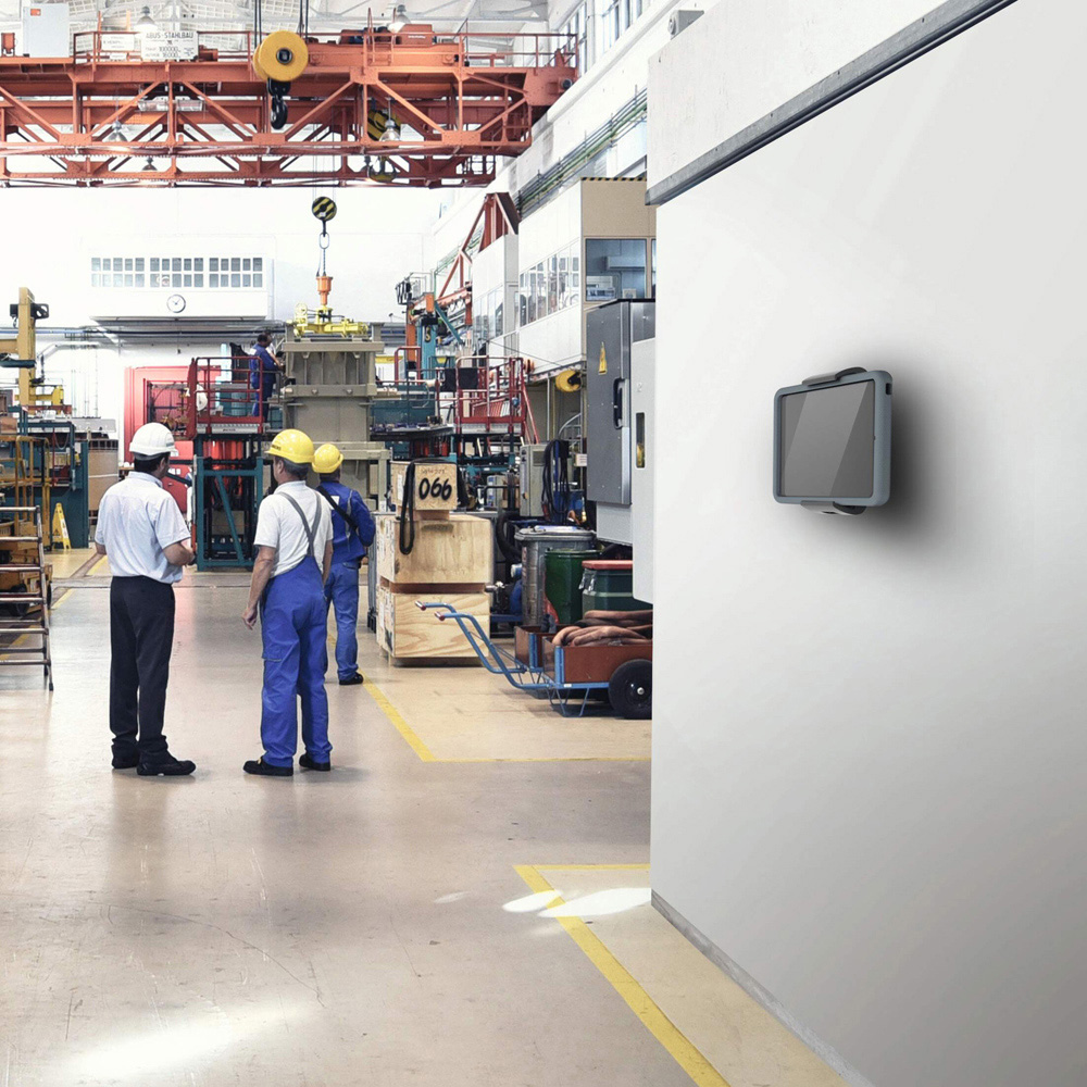 Find your perfect viewing angle with the Durable Universal Aluminium Wall Mount Foldable Tablet Holder XL for Cases. The premium tablet wall mount is suitable for the professional use of tablets in manufacturing and logistics. Tablets with a protective cover can be inserted into the variable and 23mm deep holder so that sensitive tablet PCs can be used safely in any environment. The wall-mounted tablet holder is easy to assemble and securely attaches to walls via the included screw kit or included self-adhesive pad. The ease of installing the adapter makes the holder ideal for industrial applications. Dimensions: 225 x 95 x 170mm.