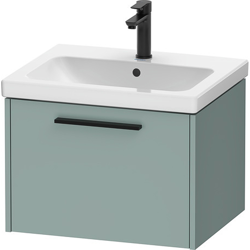 Duravit D-Code Single Drawer Fjord Green Wall Hung Vanity Unit with Black Handle 584 x 460mm