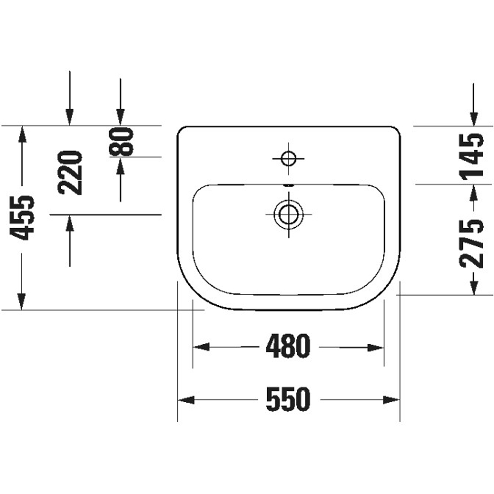 Duravit D-Code Single Tap Hole White High Gloss Semi-Recessed Wash Basin 550 x 455mm