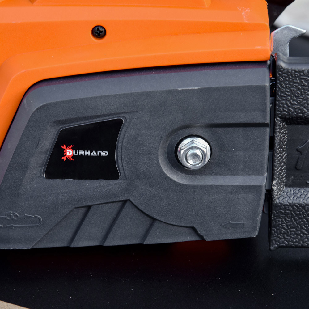Add a powerful tool to your garden kit with this 2000W Orange Electric Chainsaw by DURHAND. This electric chainsaw from DURHAND is fitted for forest cutting, family logging, or professional use. It features a 2000W motor that produces a chain speed of 13m/s and optimum cutting performance from a 40.5cm chain. For added safety, the chainsaw features a double-chain brake system. The handguard protects your hand from accidental slippage and touching the chain during use. Its integrated auto oil system can lubricate the chain, increasing cutting efficiency.