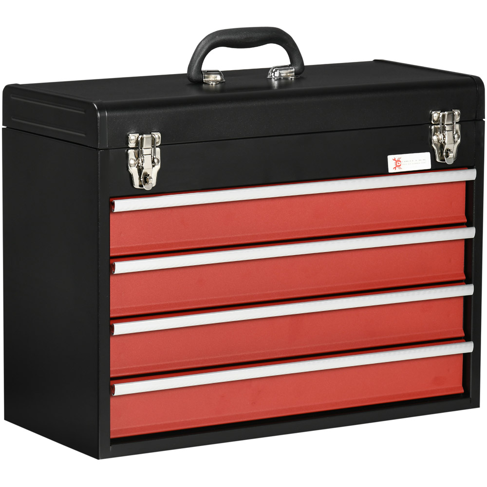 Ensure easy working by keeping your DIY tools in one place with this Black Four Drawer Tool Chest from Durhand. With four drawers and a top compartment, this unit offers plenty of storage space to keep all your essential tools. The ball-bearing drawers allow easy access so you can focus fully on the job at hand. It comes complete with a top handle, so you can carry it easily wherever needed.