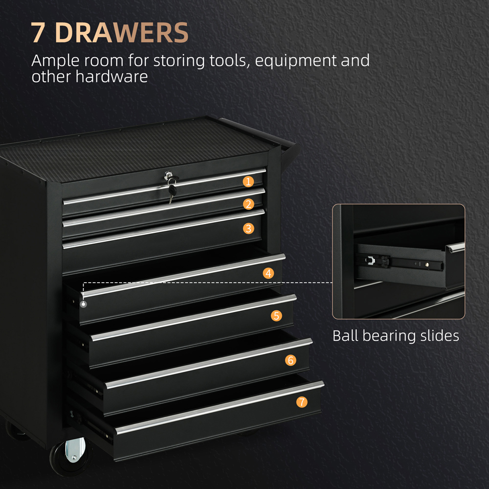 DURHAND 7 Drawer Black Tool Chest of Drawers with Wheels