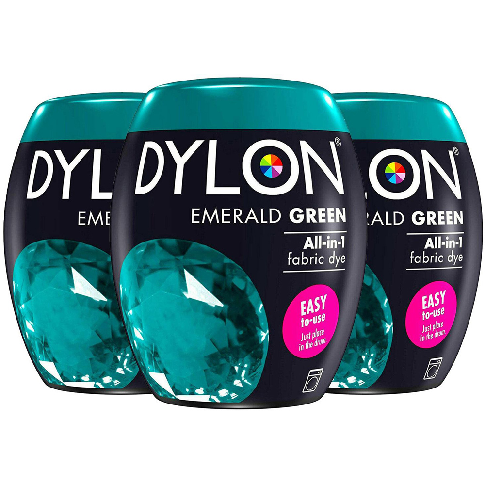 DYLON Washing Machine Fabric Dye Pod, Emerald Green, 3 Packs of 350g DYLON Fabric Dyes are an easy way to add colour to your home and wardrobe. From all colours bright and beautiful to rich and intense shades The all-in-1 formula can revive or change the colour of your clothes and soft furnishings with ease, providing perfect, long-lasting and intense colours This fabric dye pod is completely safe for your washing machine and 1 pod can dye up to 600g of fabric for the full shade effect, Suitable for cotton, linen & viscose. Mixes with synthetics will dye to lighter shades (pure synthetics will not dye) Item does not have an expiry date, rather date mentioned on the product is the manufacturer's date. Use with Pre-Dye if you want to change from one strong colour to another or if you want to achieve a lighter colour Ready-to-use fabric dye for washing machine use. DYLON Fabric Dyes are an easy way to add colour and create your own style in your home and wardrobe. From all colours bright and beautiful to rich and intense shades, with DYLON you have all the colours of the world to choose from. These Fabric Dyes are easy to use and completely safe for your washing machine! Ideal for dyeing clothes and soft furnishings in the washing machine. The all-in-1 formula can revive or change the colour of your clothes and soft furnishings and provides perfect, long-lasting and intense colour results. Use with pre-dye is you want to change from one strong colour to another or if you want to achieve a lighter colour. Sustainability - The dyeing process with DYLON with 3 warm wash cycles consumes 60 litres of water. The production of a single pair of new jeans consumes about 8000 litres of water primarily for the production of cotton and the irrigation of the fields. Note: Use with Pre-Dye if you want to change from one strong colour to another or if you want to achieve a lighter colour.