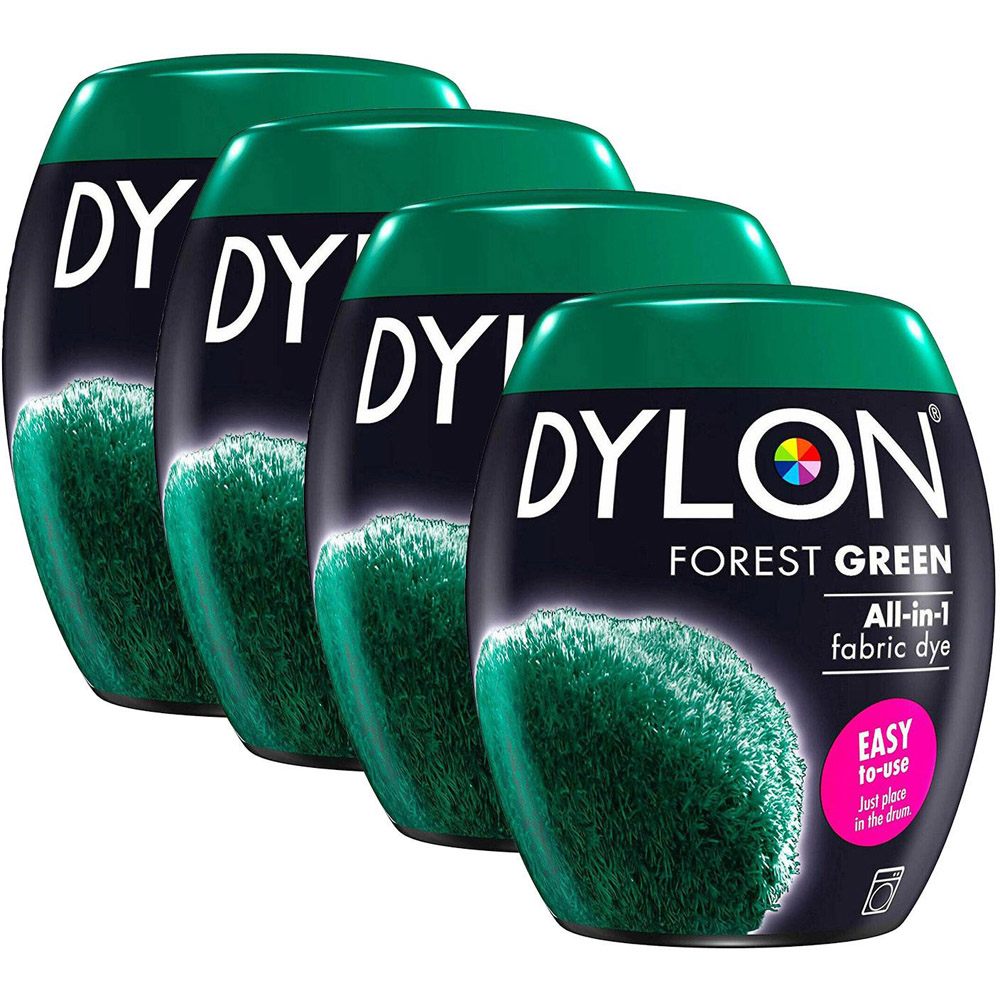 DYLON Washing Machine Fabric Dye Pod, Forest Green, 4 Packs of 350g DYLON Fabric Dyes are an easy way to add colour to your home and wardrobe. From all colours bright and beautiful to rich and intense shades The all-in-1 formula can revive or change the colour of your clothes and soft furnishings with ease, providing perfect, long-lasting and intense colours This fabric dye pod is completely safe for your washing machine and 1 pod can dye up to 600g of fabric for the full shade effect, Suitable for cotton, linen & viscose. Mixes with synthetics will dye to lighter shades (pure synthetics will not dye) Item does not have an expiry date, rather date mentioned on the product is the manufacturer's date. Use with Pre-Dye if you want to change from one strong colour to another or if you want to achieve a lighter colour Ready-to-use fabric dye for washing machine use. DYLON Fabric Dyes are an easy way to add colour and create your own style in your home and wardrobe. From all colours bright and beautiful to rich and intense shades, with DYLON you have all the colours of the world to choose from. These Fabric Dyes are easy to use and completely safe for your washing machine! Ideal for dyeing clothes and soft furnishings in the washing machine. The all-in-1 formula can revive or change the colour of your clothes and soft furnishings and provides perfect, long-lasting and intense colour results. Use with pre-dye if you want to change from one strong colour to another or if you want to achieve a lighter colour. Sustainability - The dyeing process with DYLON with 3 warm wash cycles consumes 60 litres of water. The production of a single pair of new jeans consumes about 8000 litres of water primarily for the production of cotton and the irrigation of the fields. Note: Use with Pre-Dye if you want to change from one strong colour to another or if you want to achieve a lighter colour.