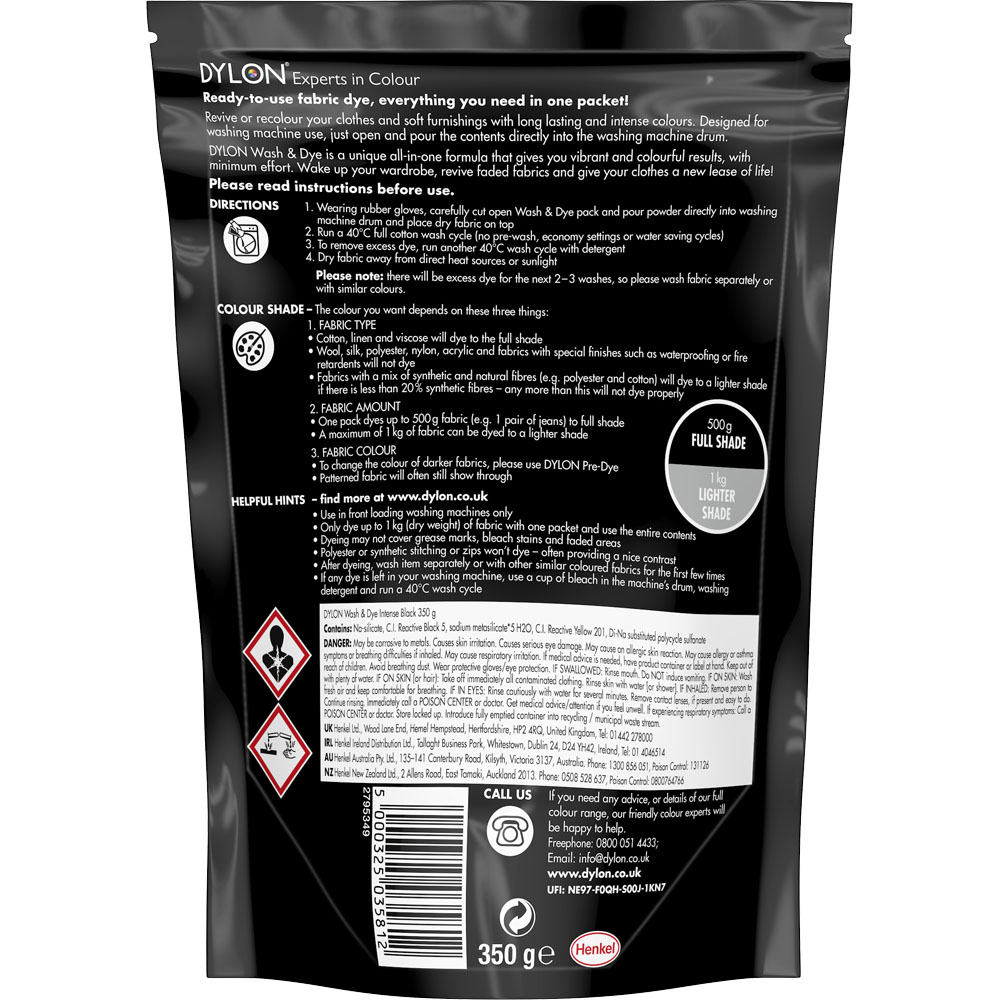 - Features a unique all-in-one formula that dyes fabrics as it washes them, so you can achieve an intense new look or take faded greys back to black with minimum effort