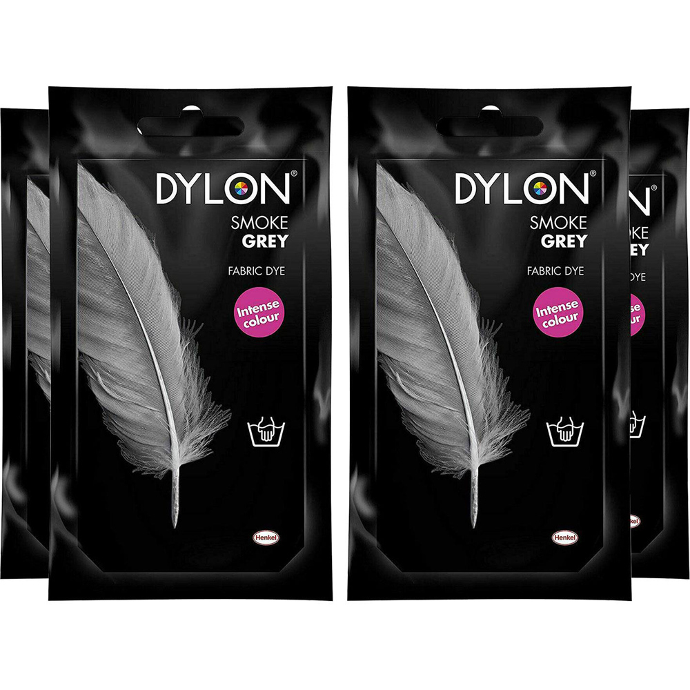 DYLON Hand Fabric Dye Sachet, Smoke Grey, 4 Packs of 50g DYLON Fabric Dyes for hand use are perfectly suited for smaller items like shorts, vests or socks, and for delicates you'd rather not put in the machine like wool and silk. Unleash your creativity with 19 intense shades Provides permanent colour on a variety of textiles Create unique items or upcycle old ones Dyes up to 250g of fabric (full shade) - 250g of salt required Perfect for crafts and delicate materials Unleash your creativity with DYLON Hand Dyes. DYLON Fabric Dyes are an easy way to add colour and create your own style in your home and wardrobe. From all colours bright and beautiful to rich and intense shades, with DYLON you have all the colours of the world to choose from. These fabric dyes for hand use are perfectly suited for smaller items like shorts, vests, gloves or scarves, and for delicates, you'd rather not put in the washing machine like wool and silk. For perfect, long-lasting and intense colour results. Sustainability - The dyeing process with DYLON with 3 warm wash cycles consumes 60 litres of water. The production of a single pair of new jeans consumes about 8000 litres of water primarily for the production of cotton and the irrigation of the fields. Fabric Weight Guide Shirt: 250g (Approx) Jeans: 600g(Approx) Bath towel: 600g(Approx) Double sheet: 600g(Approx) Double duvet cover: 1.2kg(Approx) Pair of curtains: 2kg(Approx).