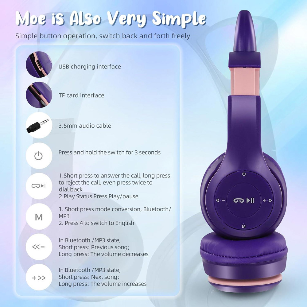 Dyzi Micro SD Card Slot Cat Ear Wireless Headphones