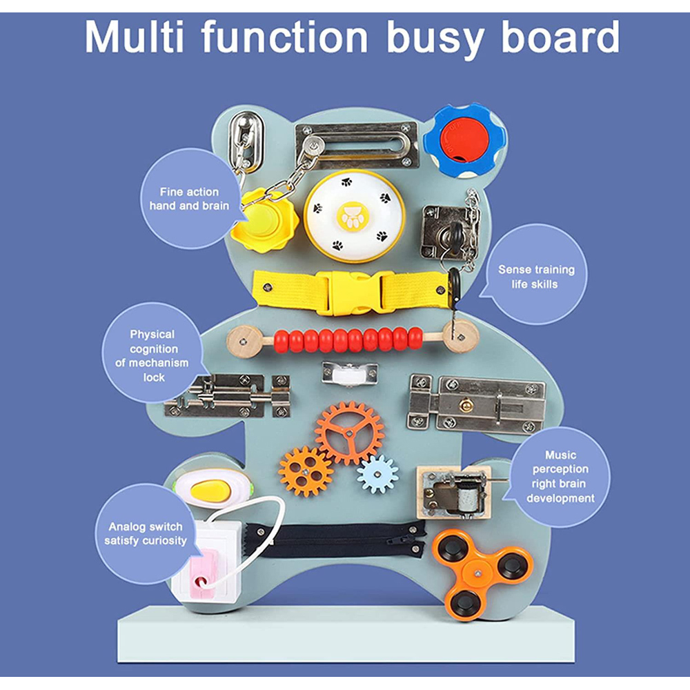 Say hello to fun and learning with the Montessori Busy Board Bear! This adorable sensory toy is designed to develop your toddler’s motor skills while keeping them entertained. With engaging activities like zippers, buttons, and laces, it’s perfect for hands-on exploration and learning. Lightweight and portable, it’s great for car rides, waiting rooms, or quiet time at home. Help your little one build confidence, patience, and coordination while having a blast with this bear-shaped learning companion.