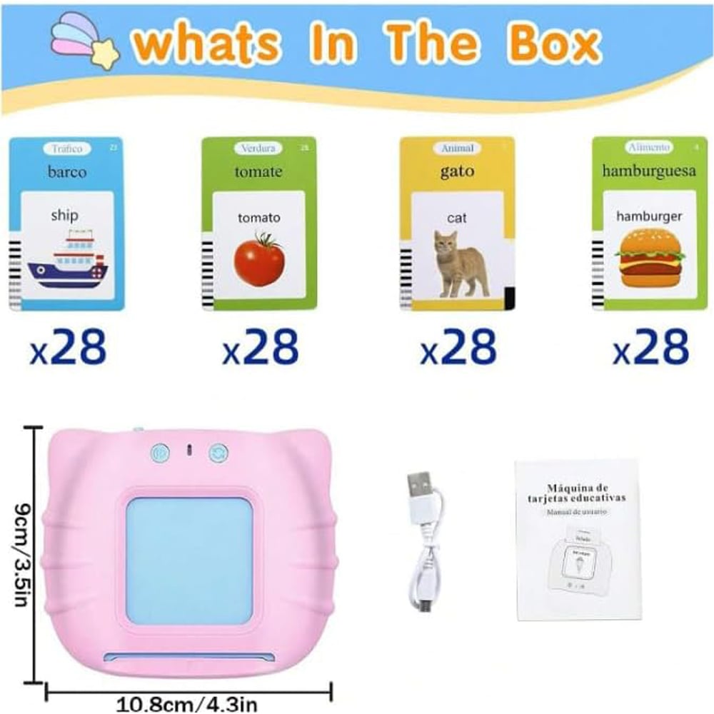Turn education into an adventure with Talking Flash Cards! Featuring 224 cards, this interactive pink learning toy is perfect for teaching your toddler new words, animals, and more. With engaging sounds and colourful designs, your child will stay focused and excited as they explore. Compact and easy to carry, it’s great for playtime anywhere. Parents will love how seamlessly this toy blends education with fun, helping little ones build their vocabulary and confidence in a delightful way.