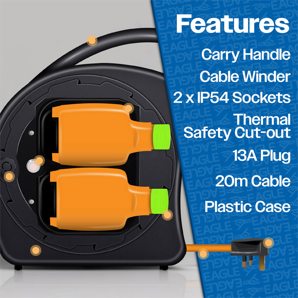 Eagle 2 Gang 13A Extension Reel 20m