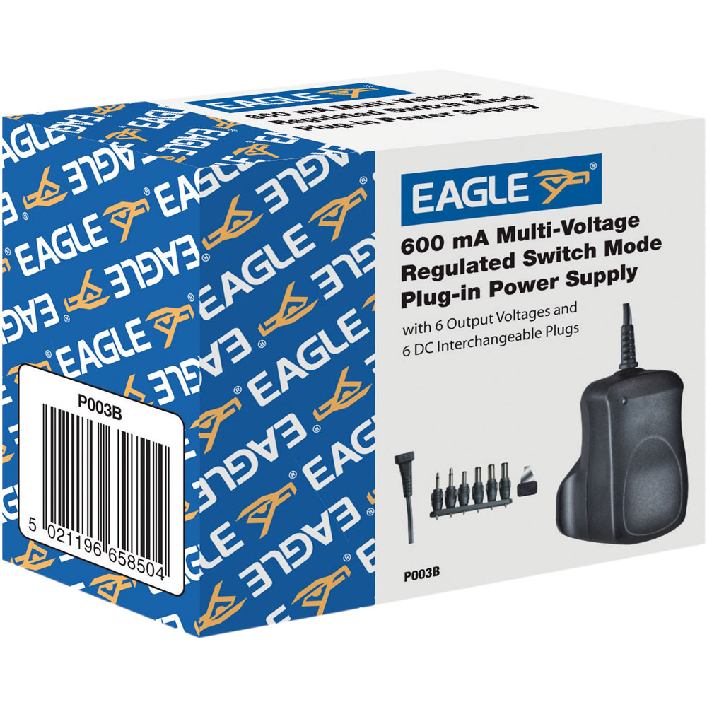 Smartly designed, this Eagle 600MA Regulated Switch Mode UK Power Supply Plug in black will make a practical addition to any household. Complete with six DC adaptor plugs, it offers a plug-in regulated power supply with 3 to 12V DC switchable output and selectable polarity. Additionally, it also has features such as an LED indicator, IC-regulated DC output, short circuit protection and automatic overload cut-off which offer added convenience and safety.