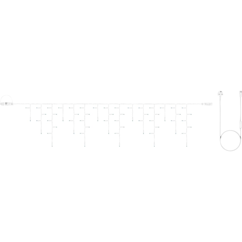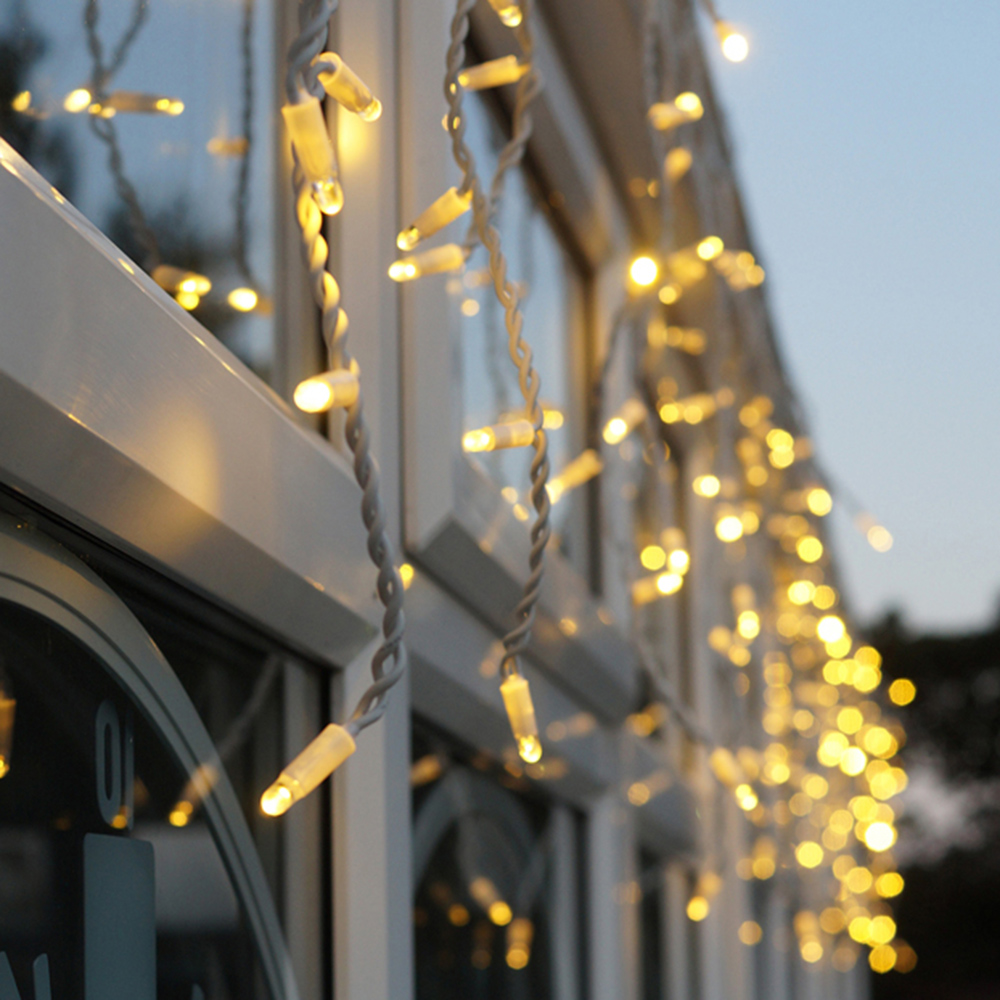 Create a space you will love coming home to with the Eagle Connect 120 Warm White LED White Icicle Light 5m. Manufactured with a tough rubber cable and fitted with 120 LED bulbs, this five-metre icicle light is designed to withstand all types of weather, making it a perfect choice for year-around use. This light also features drops of 20cm, 40cm, and 60cm, adding a dynamic touch to your decor. From sunny days to frosty winter nights, this light will keep your outdoor space shining brightly. This versatile, weather-resistant light easily brings a touch of magic to any occasion and can be used indoors or outdoors for long-lasting illumination. The light comes in two metre mains lead, making it easy to achieve the ideal look for any room or setting. The easy connect system allows you to add more lights to an existing starter cable, customising the length to suit your needs. The warm white colour creates the perfect atmosphere for any occasion.