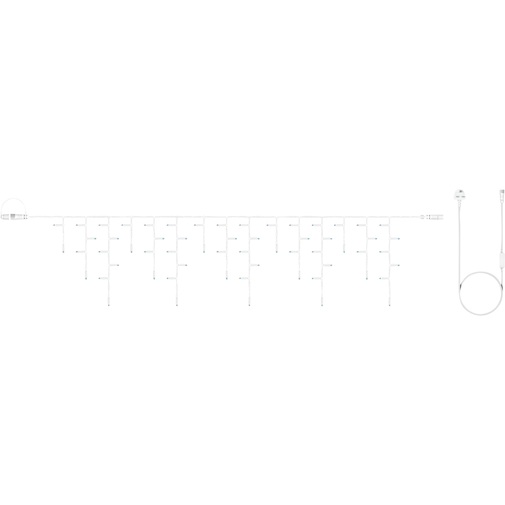 Create a space you will love coming home to with the Eagle Connect 180 Warm White LED White Icicle Light 6m. Manufactured with a tough rubber cable and fitted with 180 LED bulbs, this six-metre icicle light is designed to withstand all types of weather, making it a perfect choice for year-around use. This light also features drops of 20cm, 40cm, and 60cm, adding a dynamic touch to your decor. From sunny days to frosty winter nights, this light will keep your outdoor space shining brightly. This versatile, weather-resistant light easily brings a touch of magic to any occasion and can be used indoors or outdoors for long-lasting illumination. The light comes in two metre mains lead, making it easy to achieve the ideal look for any room or setting. The easy connect system allows you to add more lights to an existing starter cable, customising the length to suit your needs. The warm white colour creates the perfect atmosphere for any occasion.