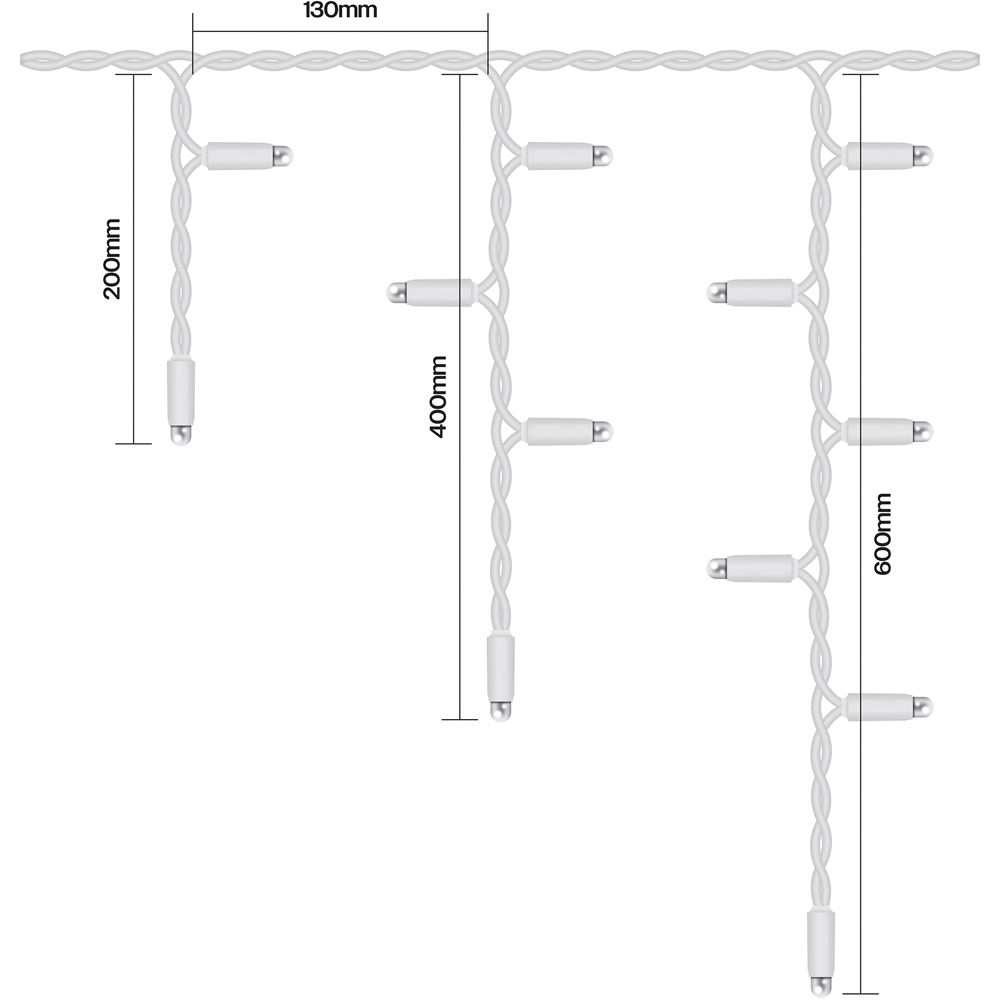Light up your celebrations with the Eagle Connect 60 Cool White LED Twinkle Effect Icicle Light 2m. These lights feature a 10% twinkle effect, adding a charming flicker to your festive displays. Manufactured with durable rubber cables, these lights are built to withstand the elements, making them a top choice for all-season use. With an IP65 rating, these lights are weather-resistant, making them ideal for various outdoor applications as well as extended indoor use. Whether warm summer evenings or chilly winter nights, these icicle lights will keep your space beautifully illuminated. The easy connect system allows you to add more lights to an existing starter cable, customising the length to suit your needs.