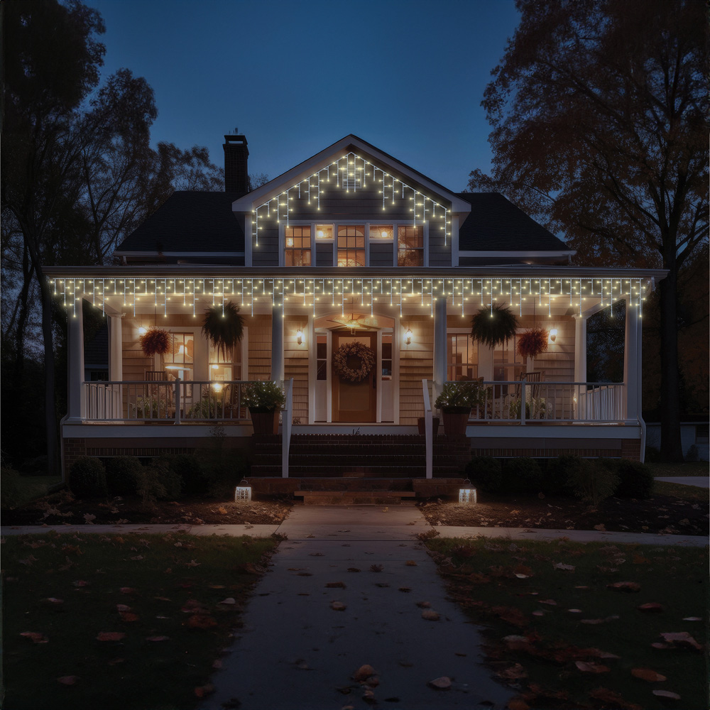 Create a space you will love coming home to with the Eagle Connect 60 Warm White LED White Icicle Light 2m. Manufactured with a tough rubber cable and fitted with 60 LED bulbs, this two-metre icicle light is designed to withstand all types of weather, making it a perfect choice for year-around use. This light also features drops of 20cm, 40cm, and 60cm, adding a dynamic touch to your decor. From sunny days to frosty winter nights, this light will keep your outdoor space shining brightly. This versatile, weather-resistant light easily brings a touch of magic to any occasion and can be used indoors or outdoors for long-lasting illumination. The light comes in two metre mains lead, making it easy to achieve the ideal look for any room or setting. The easy connect system allows you to add more lights to an existing starter cable, customising the length to suit your needs. The warm white colour creates the perfect atmosphere for any occasion.