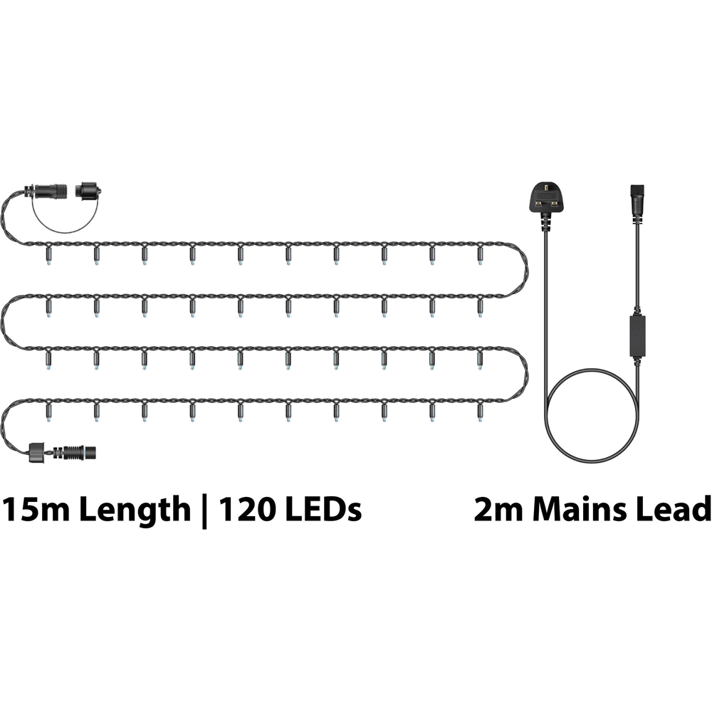Get the perfect, cosy glow every night with the Eagle Connect RGB LED Black String Light 15m. You can brighten up any setting with this durable and versatile string light. It is crafted with a strong rubber cable that is built to handle all weather conditions. This light is perfect for every season, whether lighting up warm summer evenings or adding a cosy glow on chilly winter nights. Designed for both indoor and outdoor use, it brings a touch of magic wherever it is placed. With an easy connect system, you can expand and customise the light to fit any space perfectly. You can order the total length you require and connect an additional five-metre to ten-metre sections to extend the length just the way you want it, making it ideal for small places or large areas. The white colour creates the perfect atmosphere for any occasion. Featuring energy-efficient, high-quality LED bulbs, this light is not only built to last but will keep your energy usage low too.